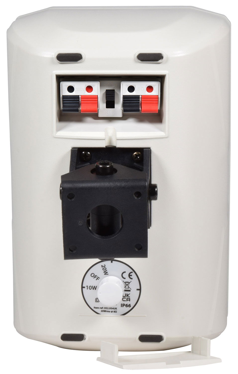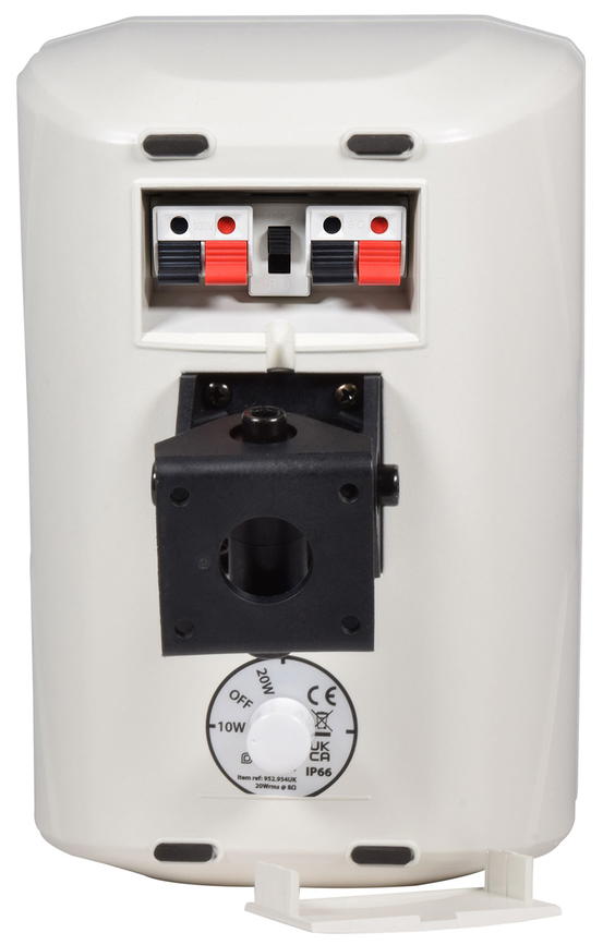Lehký PA reproduktor s lisovanými ABS ozvučnicemi a vybavené 2-osými držáky pro montáž na stěnu. Vstupy pro standardní 8 Ohmový provoz nebo 100V vedení se 2 napájecími odbočkami nabízejí flexibilitu zapojení v rámci různých typů instalací. Přepnutí na provoz 8 Ohm obchází transformátor pro skutečně nízkou impedanci. Kompaktní skříně se super nízkou hmotností umožňují snadnou instalaci na různé povrchy stěn a zadní sklopné držáky umožňují přesné umístění pro nejlepší pokrytí. Skříně, kužely reproduktorů, mřížky a držáky jsou odolné vůči povětrnostním vlivům. Pohodlné a cenově výhodné řešení pro hudbu na pozadí a hlasová hlášení ve vnitřních nebo krytých venkovních prostředích. Super nízká hmotnost pro snadnou instalaci Integrovaný 2osý nástěnný držák Přepínatelný bypass pro skutečný provoz 8 Ohmů IP66 odolný vůči povětrnostním vlivům