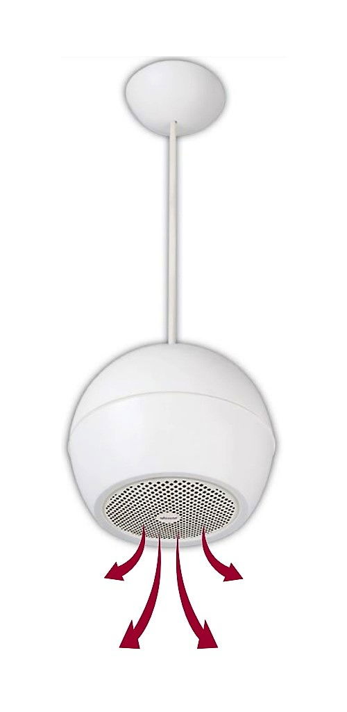 Speciální závěsný 100 V reproduktor do prostor s vysokými stropy s vyzařováním 360°.