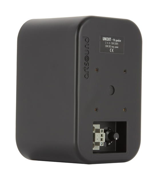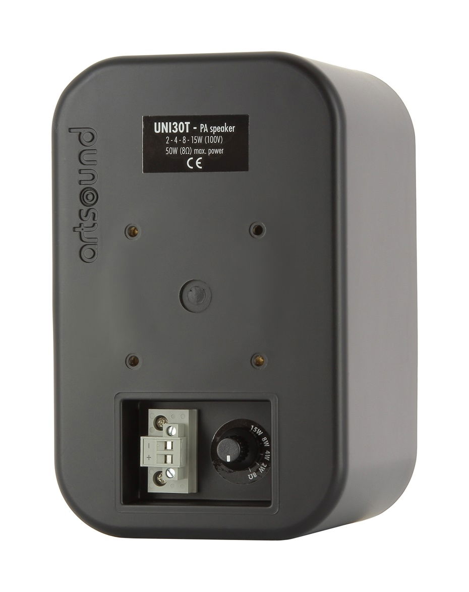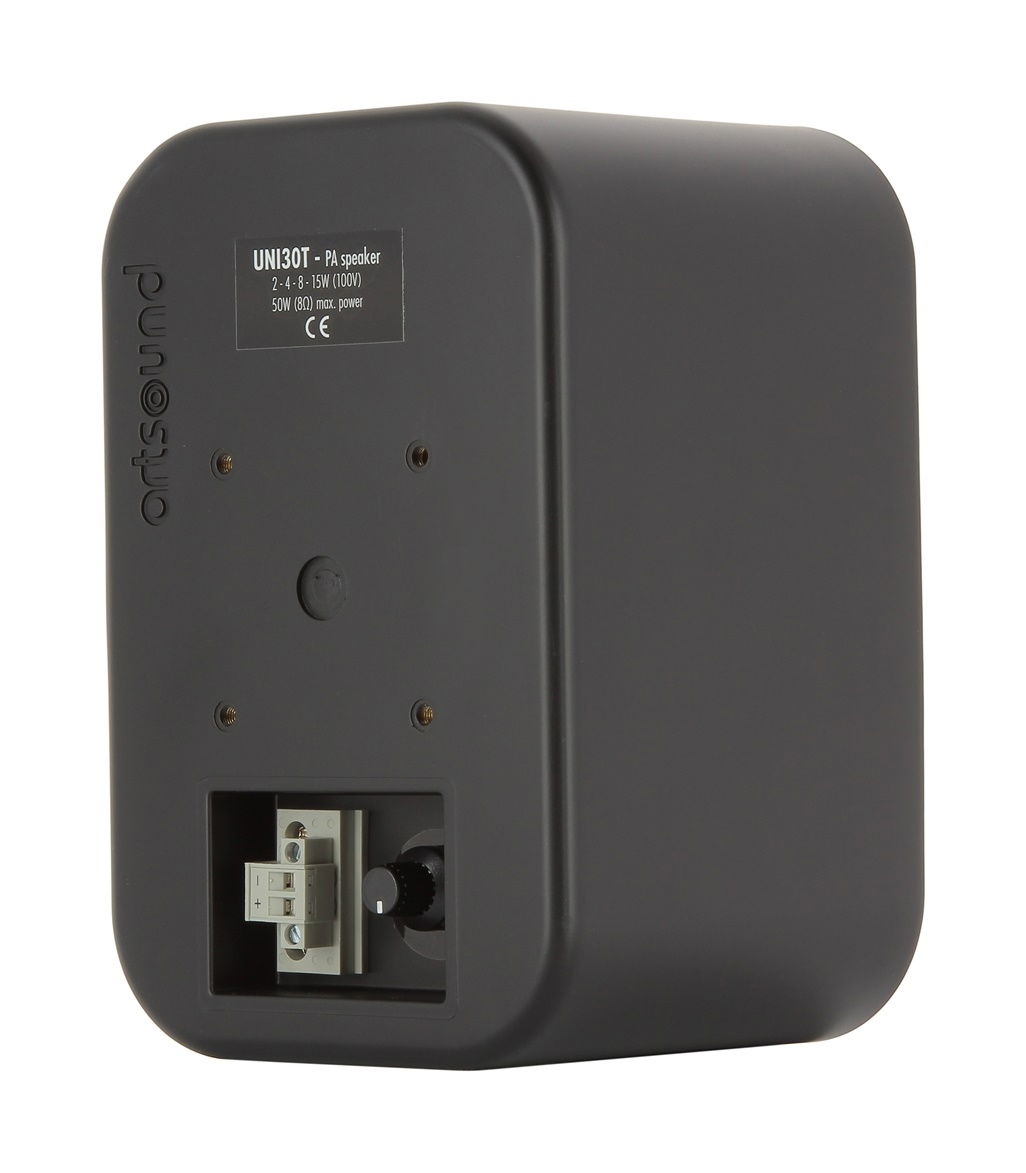 Dvoupásmový reproduktor s basreflexovou ozvučnicí UNI30T je odolný proti prachu a vlhkosti. Zásuvné pérové terminály usnadňují připojení reproduktorového kabelu a zajišťují pevné spojení a dokonalý kontakt. Vestavěný 100 V transformátor umožňuje přepínání výkonu mezi 2, 4, 8 a 15 W. Zároveň je možné díky integrovanému přepínači výkonu trafo obejít a připojit reproduktor ke standardnímu nízkoimpedančnímu 8 Ω zesilovači kdy nabízí výkon 50 W.