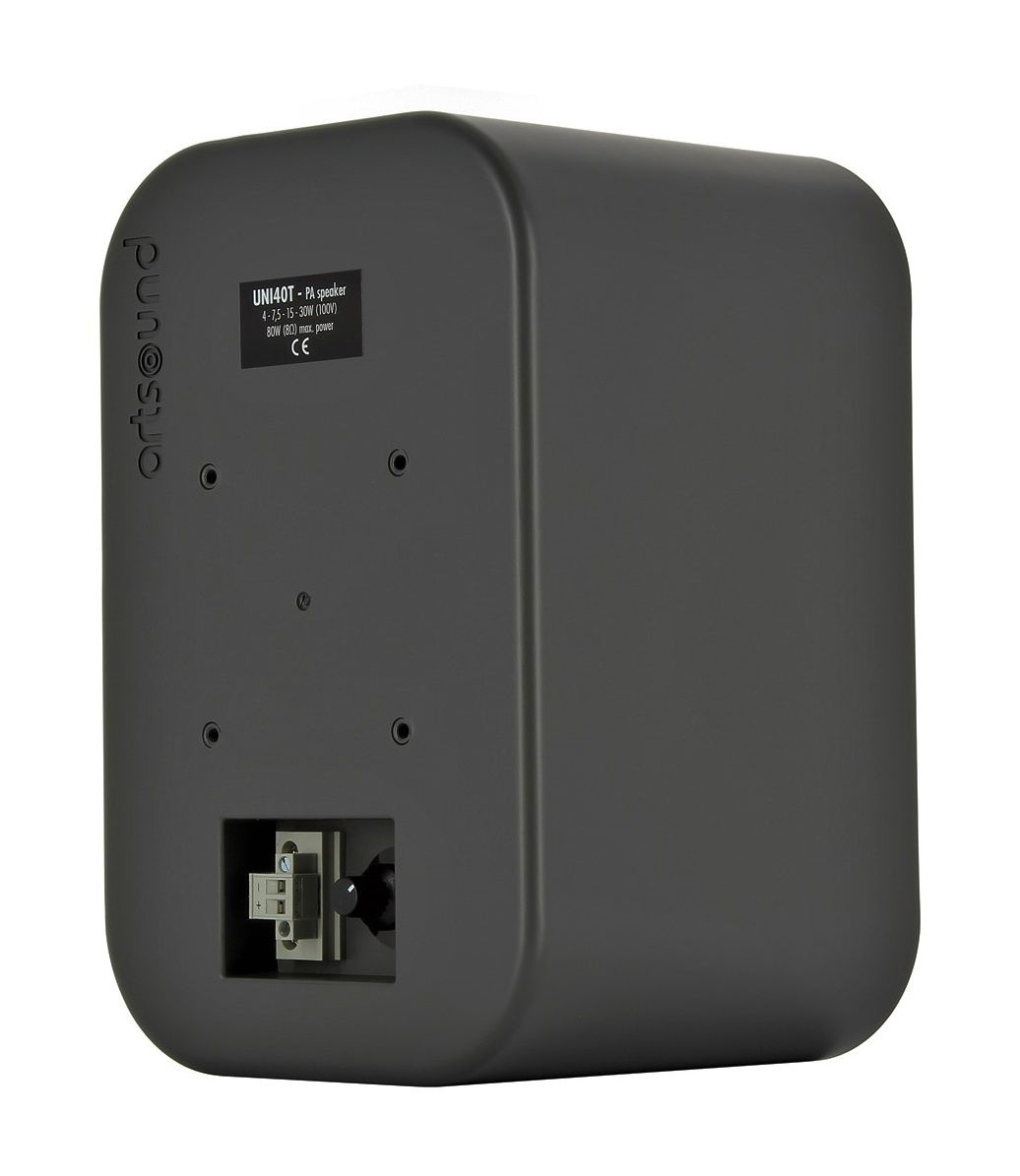 Dvoupásmový reproduktor s basreflexovou ozvučnicí UNI40T je odolný proti prachu a vlhkosti. Zásuvné pérové terminály usnadňují připojení reproduktorového kabelu a zajišťují pevné spojení a dokonalý kontakt. Vestavěný 100 V transformátor umožňuje přepínání výkonu mezi 4, 7,5, 15 a 30 W. Zároveň je možné díky integrovanému přepínači výkonu trafo obejít a připojit reproduktor ke standardnímu nízkoimpedančnímu 8 Ω zesilovači kdy nabízí výkon 80 W.