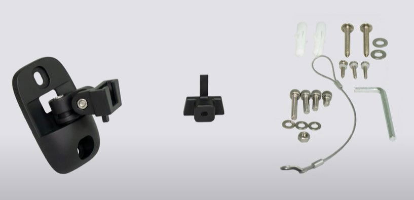 Součástí je veškeré potřebné příslušenství pro rychlou a snadnou instalaci: nastavitelná montážní konzola (± 60º ve všech směrech) s úpravou proti povětrnostním vlivům, nerezové šrouby a ocelové bezpečnostní lanko.