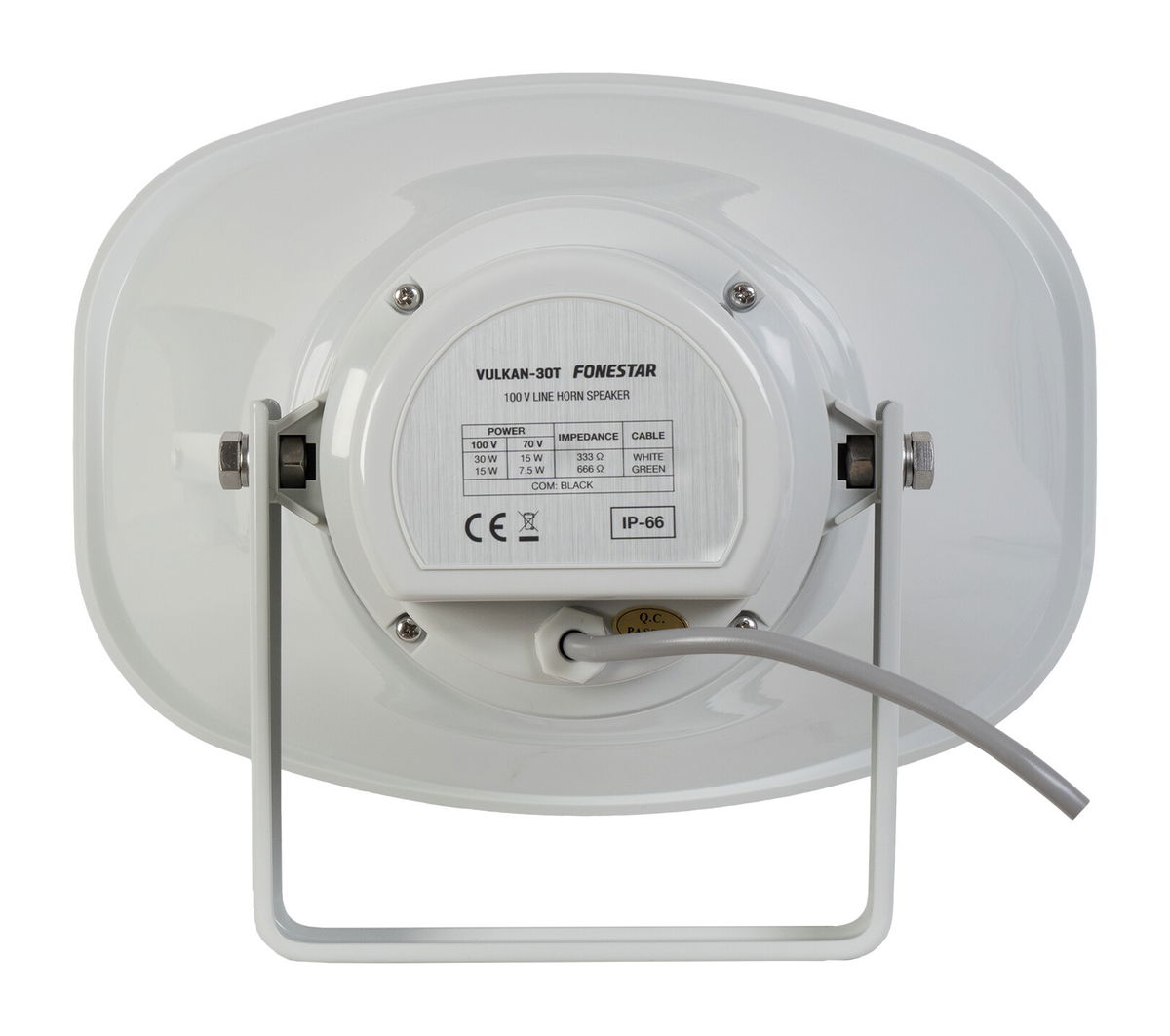 Model VULKAN-30T je navržen tak, aby spolehlivě fungoval i v náročných klimatických podmínkách. Difuzor i zadní kryt jsou vyrobeny z odolného ABS plastu, držák z hliníku a upevňovací šrouby z nerezové oceli A2, což zajišťuje dlouhou životnost i při vystavení povětrnostním vlivům. Stupeň krytí IP66 garantuje úplnou ochranu proti prachu i silně tryskající vodě, takže je reproduktor vhodný i pro instalace v prostředí s vysokou vlhkostí.
