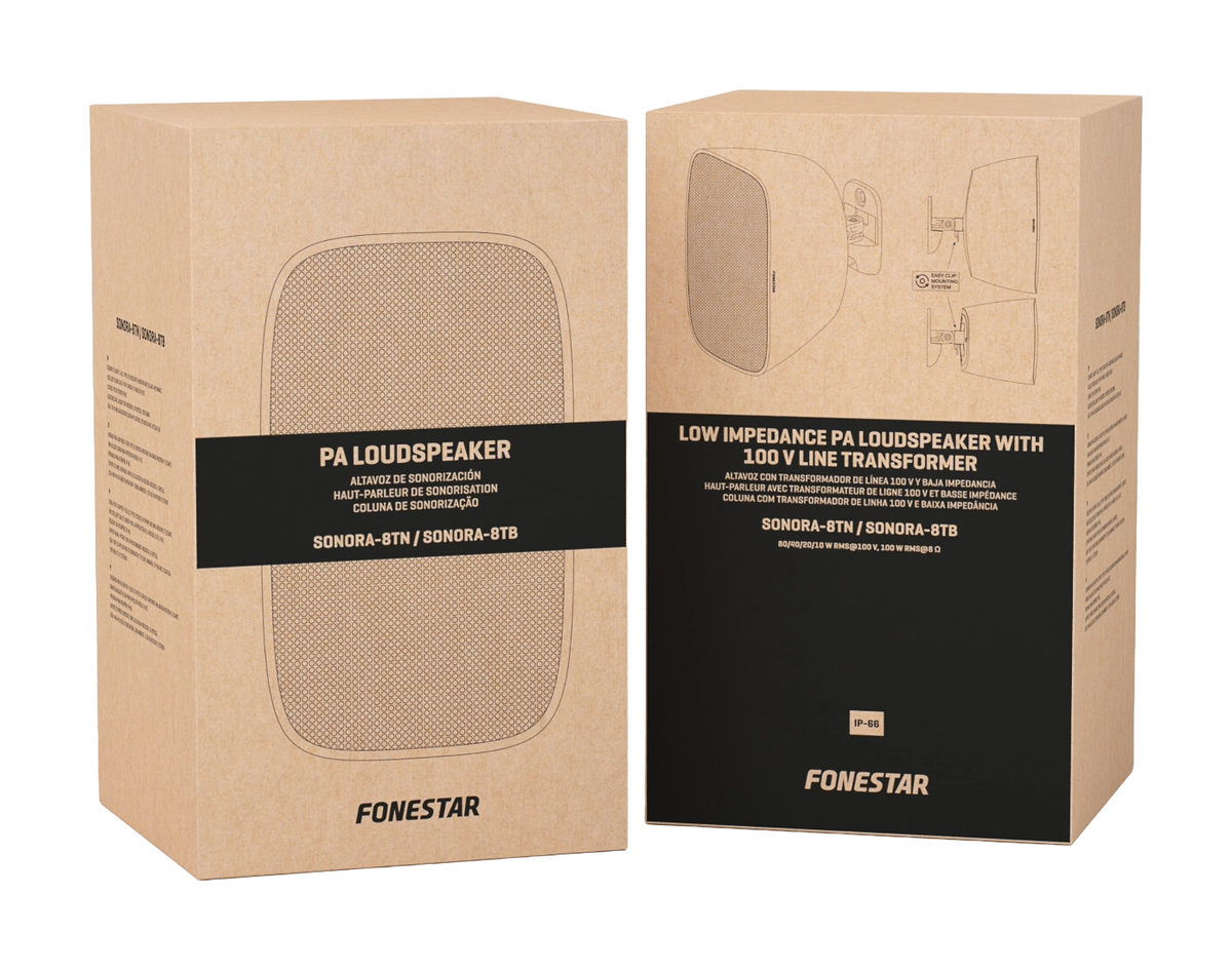 SONORA-8T je 2-pásmový nízkoimpedanční reproduktor se 100 V linkovým trafem, speciálně navržený pro ozvučení veřejných i privátních prostor. Kvalitní povrchová úprava a elegantní design umožňují začlenění do jakéhokoli prostoru. Reproduktor je plně připraven i pro umístění ve venkovním prostředí včetně mořských oblastí, protože má hliníkovou mřížku, ochranu proti UV záření a je voděodolný (IP66). Díky vestavěnému přepínači impedance se nabízí využití jak v rozsáhlých 100 V aplikacích, tak v domácích podmínkách v rámci nízkoimpedančního řešení. Přednosti tohoto univerzálního reproduktoru tak oceníte při podkresovém ozvučení veřejných prostor, restaurací, kaváren, supermarketů, vestibulů a učeben. Stejně tak si najde své místo v každé domácnosti ať již v interiéru nebo na terase či v zimní zahradě.