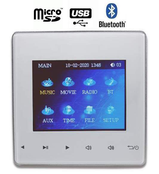 Stěnový USB / microSD / MP3 přehrávač s velkým 2,8" barevným LCD displejem a vestavěným 4-kanálovým zesilovačem Tento vysoce kvalitní…