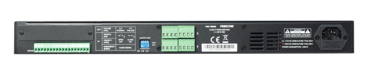 Fonestar FSD-4500E - Vícekanálový výkonový PA zesilovač DANTE, 70 a 100 V, 4 x 400 W