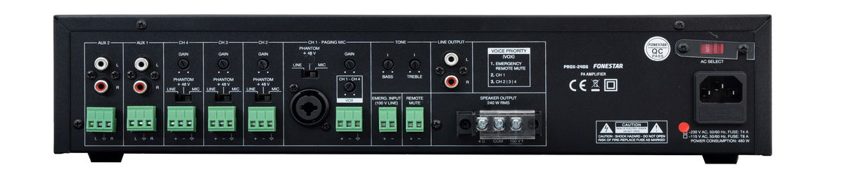 Fonestar PROX-240S - 100 V PA zesilovač, 240 W, 1 zóna
