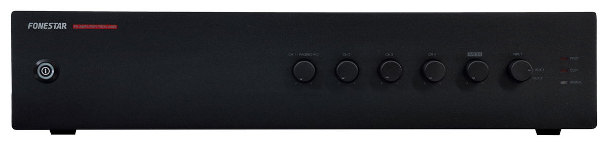 PA mono zesilovač s výkonem 240 W RMS pro veřejné ozvučení, který nabízí vynikající zvukové vlastnosti, 7 vstupů a volitelnou úroveň priority pro 4 mikrofony je vhodný pro široké spektrum aplikací. PROX-240S představuje jednoduché a ekonomické řešení pro plošné ozvučení nebo systémy pro podkresovou hudbu ve spojení se 100 V nebo nízkoimpedančními reproduktory, např. obchodní prostory, vzdělávací centra, památky, výstavy, bary, restaurace atd.