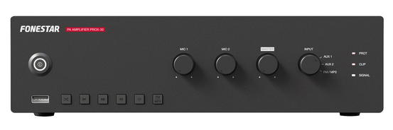 - Krátký popis: Univerzální jednozónový 100 V PA zesilovač s výkonem 30 W RMS, USB a FM rádiem.