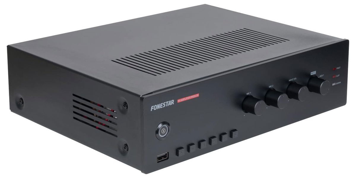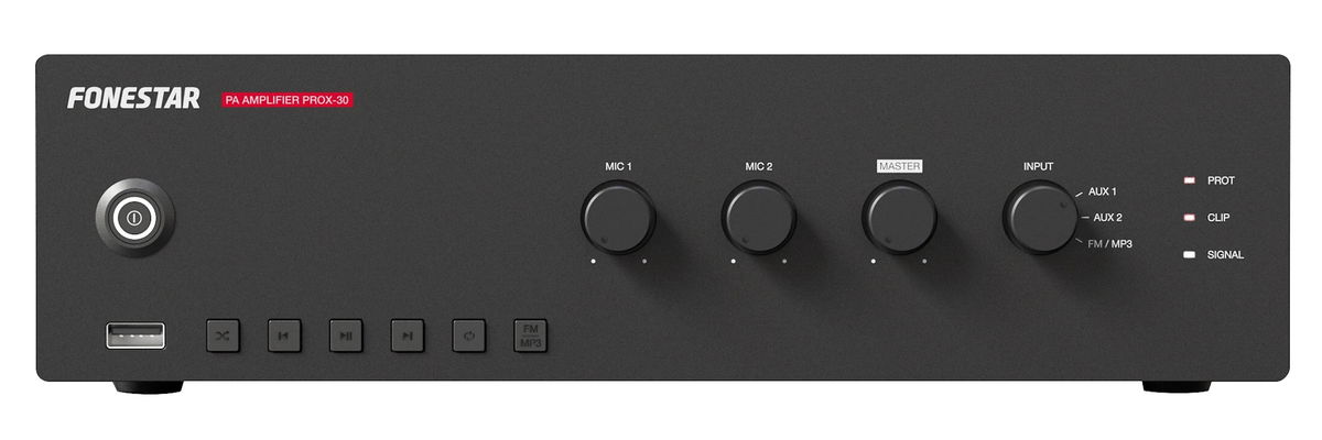 Fonestar PROX-30 - 100 V zesilovač pro veřejné ozvučení s přehrávačem USB, MP3, FM, 30 W