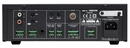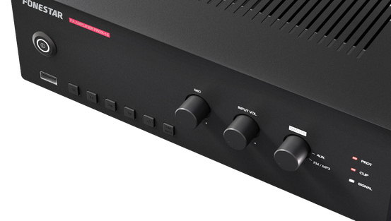 Toto univerzální zařízení integruje v jedné jednotce zesilovač, mixážní pult, přehrávač, mikrofonní a pomocné vstupy – představuje tak ideální řešení pro ekonomické ozvučovací systémy s 100 V linkou nebo nízkoimpedančními (4 Ω) reproduktory.