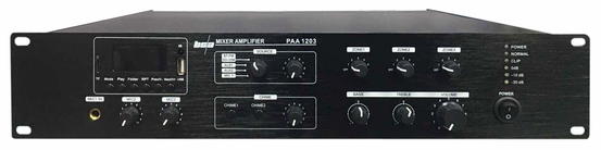 3-zónová rozhlasová ústředna s USB/microSD/MP3 přehrávačem, FM tunerem, Bluetooth připojením (verze 5.0) a dálkovým ovládáním. Obsahuje 2-pásmové korekce a nezávislou regulaci hlasitosti v každé zóně. Na přední straně se nacházejí tlačítka pro 2 gongy a na zadní straně je spínací kontakt pro dálkové spuštění gongu. Obsahuje vstupy: 1x MIC na předním panelu (Jack6,3mm), 2x MIC (XLR/Jack6,3mm s možností zapojení fantomového napájení +48V) a 2x AUX (2x RCA). Výstupy: 1x AUX (2x RCA), 1zónový reproduktorový výstup (4/8/16ohm / 70V / 100V), 3zónový reproduktorový 100V výstup. Ústředna je určena k montáži do 19" RACK-u o výšce 2U.