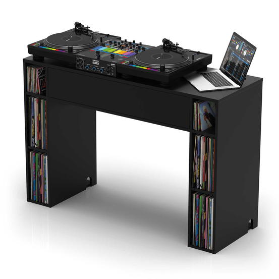 Glorious Modular Mix Station je stylový DJs stůl pro uskladnění více jak tří set 12" a 7" LP desek. Police jsou přizpůsobeny rozměrům hudebních nosičů a na horní desku můžete navíc umístit i velký DJ pult s laptopem. Přední deska je zakryta výklopným víkem, vkusně tak schováte vaší veškerou kabeláž a příslušenství. Modular Mix Station skvěle poslouží jako designový nábytek do moderně vybavené domácnosti nebo jako DJ stůl pro studio session nebo live perfromance. K dostání v odstínech bílé a černé.