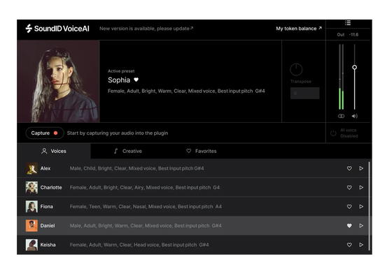 SoundID VoiceAI je pokročilý plugin pro transformaci hlasu, který ti umožňuje proměnit libovolnou vokální stopu do podoby jiného lidského hlasu pomocí moderní AI technologie. Díky tomu lze i běžně nahraný vokál převést na profesionální studiový hlas – často bez ohledu na původní akustické podmínky. Stačí otevřít plugin v DAW, vložit vokální stopu a vybrat si z knihovny realistických AI hlasových modelů studiové kvality.