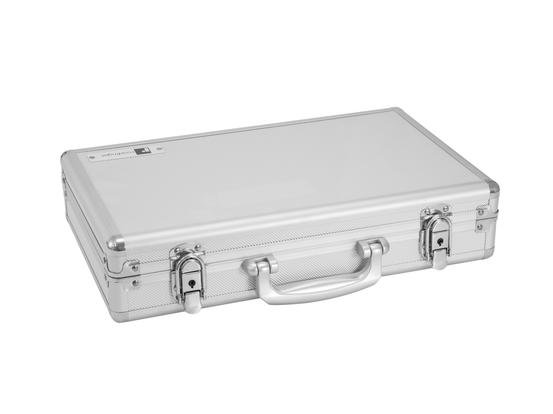 Přepravní kufr pro 13“ notebook s přihrádkou pro příslušenství a kapsami ve víku pro dokumenty a další drobnosti. Kvalitní zpracování z vícevrstvé lepené 4 mm překližky, hliníkovými profilovými rámy a zaoblenými rohy. Výplň s pěnovou výstelkou, popruhy pro zajištění laptopu, robustní rukojeť, pružinové zámky a plastové nožičky. Atraktivní stříbrné provedení.