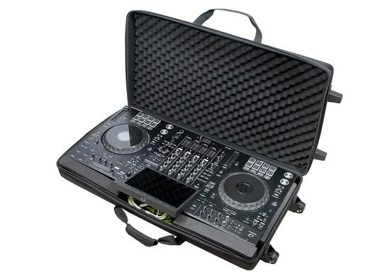 Vlastnosti: • Navrženo pro systém AlphaTheta/Pioneer DJ XDJ-AZ • Lehký a nárazuvzdorný přepravní obal vyrobený z lisované EVA pěny o tloušťce 9 mm, vnější nylonová vrstva s prošitím • Víko je polstrované molitanovou výstelkou typu „vlnky“ o hustotě 18kg/m3 o tloušťce 3 cm • Spodní strana je vyplněna plochým molitanem o hustotě 33kg/m3 o tloušťce 1cm • Elastický popruh pro uchycení na tašku s kolečkama • 3 způsoby nošení: kolečka, madlo a ramenní popruh • Kompatibilní s kryty Decksaver® • Vnější rozměry: 999 × 518 8 mm • Vnitřní rozměry: 936 × 503 6 mm • objem: 73 l mm mm mm • Hmotnost: cca 3,0 kg mm