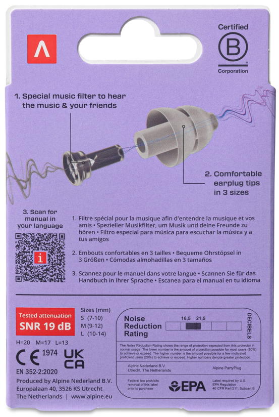 Alpine PartyPlug transparent jsou moderní špunty do uší navržené speciálně pro milovníky hudby, kteří si chtějí vychutnat koncerty, festivaly nebo party bez rizika poškození sluchu. Díky speciálnímu hudebnímu filtru snižují nebezpečné hladiny hluku o 19 dB, aniž by zkreslovaly kvalitu hudby nebo omezovaly možnost komunikace s okolím. Nově vylepšené PartyPlug přináší ještě vyšší pohodlí díky třem velikostem koncovek (S/M/L), které se přizpůsobí každému uchu. Ergonomický design s širším filtrem usnadňuje manipulaci a zajišťuje bezpečnější a stabilnější usazení. Součástí balení je také robustní pouzdro na klíče, díky němuž máte ochranu sluchu neustále po ruce – ať už jste na festivalu, v klubu nebo na koncertě. Špunty jsou vyrobeny z měkkého, hypoalergenního materiálu a jsou znovupoužitelné. Stačí je po použití opláchnout vlažnou vodou s mýdlem a jsou připraveny k dalšímu nasazení. Alpine PartyPlug transparent jsou ideální volbou pro každého, kdo nechce volit mezi zábavou a ochranou zdraví. Užijte si hudbu naplno – bezpečně a stylově.