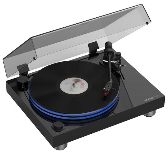Reloop Turn 7 je špičkový řemínkový gramofonový systém s USB výstupem, který spojuje precizní zvukovou kvalitu s moderním a elegantním designem. Jeho srdcem je 20 mm silný akrylátový talíř s antistatickými vlastnostmi a volitelným LED podsvícením, díky čemuž se stává vizuálním středobodem každého interiéru. O pohon se stará nízkovibrační DC motor s externím plochým řemínkem vedeným kolem obvodu talíře. Tato konstrukce zajišťuje stabilní chod a výrazně eliminuje přenos vibrací. Přepínačem na horní straně lze volit mezi otáčkami 33 a 45 RPM. Turn 7 je osazen uhlíkovým raménkem s výjimečnými akustickými vlastnostmi, nastavitelnou výškou (VTA) a anti-skatingem pro maximální přesnost. V základní výbavě najdete i předinstalovanou přenosku Ortofon 2M Red, která nabízí otevřený, dynamický a přirozeně teplý zvuk. Kromě toho gramofon disponuje vestavěným přepínatelným předzesilovačem (line/phono), pozlacenými RCA konektory pro optimální přenos signálu a USB výstupem pro snadnou digitalizaci vinylů. Masivní MDF šasi, výškově nastavitelné izolátory a povrch v černém klavírním laku podtrhují prémiový charakter tohoto přístroje.