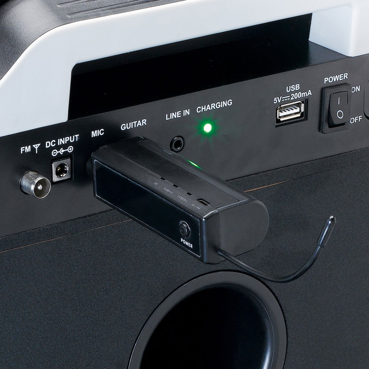 Použití je velmi jednoduché. Bezdrátový mini přijímač je vybavený konektorem 6,3 mm jack, který lze zapojit přímo do mikrofonního vstupu. Nejsou potřeba žádné další kabely ani adaptéry. Mikrofon má vypínač a zobrazení stavu signálu a frekvence.