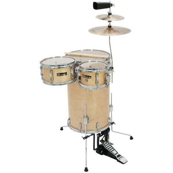 Sada bicích CDS Cocktail 5-dílná z javorové překližky. Obsahuje: FT 15"x25" (8 šroubů) + TT 10"x5" (8 šroubů) + dřevěný SD 8"x5,5" (8 šroubů) + šlapka + 2 činely s držákem + cowbell. Barva přírodní.