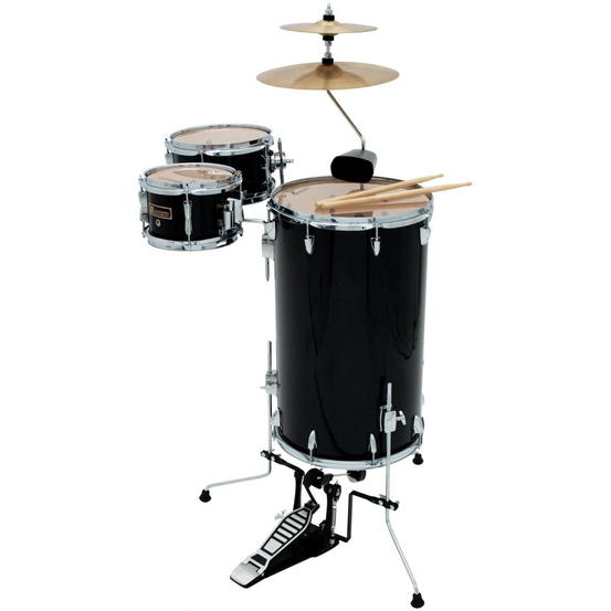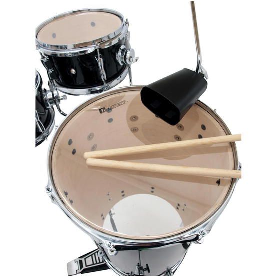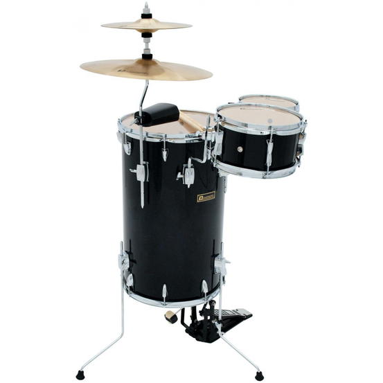 Sada bicích CDS Cocktail 5-dílná z javorové překližky. Obsahuje: FT 15"x25" (8 šroubů) + TT 10"x5" (8 šroubů) + dřevěný SD 8"x5,5" (8 šroubů) + šlapka + 2 činely s držákem + cowbell. Barva černá.