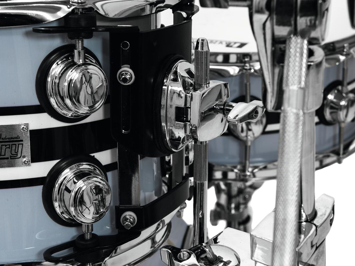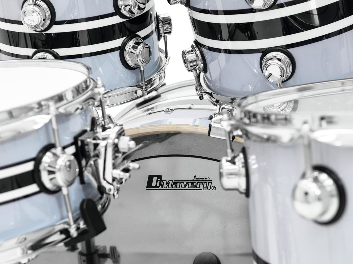 Bicí sada bez činelů, sestávající z: Basový buben: 22" x 18". Snare buben: 14" x 5,5". Floor Tom: 16" x 16", Tom2: 12" x 10", Tom1: 10" x 9". 8-vrstvá javorová překližka. Free floating držáky pro Tomy. Hrana korpusů s úhlem 45°. Hardware vč. stojanů na hi-hat, 2 x činely a malý buben. Vč. šlapky a bubenické stoličky. Dodáno bez činelů. Vč. blan Evans. Barva: bílá / černá / šedá.