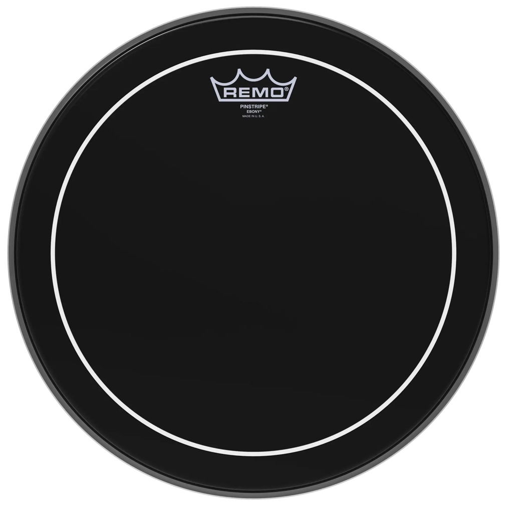 REMO EBONY – PINSTRIPE Blány Ebony, tedy v černém provedení, patří mezi oblíbené modely řady bubeníků kvůli jejich klasickému vzhledu, dlouhé životnosti a hlavně muzikálnímu zvuku. Konkrétně série Pinstripe nabízí blány vyrobené z dvou vrstev Mylaru, z nichž jedna je silná 10 a druhá 5 mil, tedy 10 a 5 tisícin palce. Díky obvodovému prstenci u nich dochází k utlumení nejvyšších frekvencí a zvuk tak získává typickou temnou barvu. Mají velmi krátký sustain, středně silný attack a spoustu basů, díky čemuž se skvěle hodí pro tlustý zvuk v R’n‘B nebo rocku.