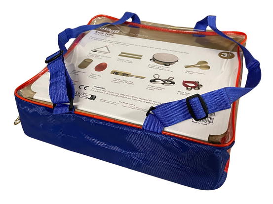 Rytmická perkusní sada pro děti. Obsahuje: 1 chromovaný triangl (4 x 0,8") s paličkou, 1 pár 4 x 0,8" dřevěných dřívek, jednu 6" předladěnou dřevěnou tamburínu se 4 páry plíšků, 1 pár dřevěných maracas, 1 dřevěný šejkr, 1 plastový šejkr, 1 dřevěnou tamburínovou paličku se 4 páry plíšků, 1 pár pochromovaných prstových činelků, 1 sada zápěstních rolniček. Bezpečnostní štítek hračky: Certifikace EN71 (Evropa), ASTM F963 (USA), SOR (Kanada). Od 3 let.