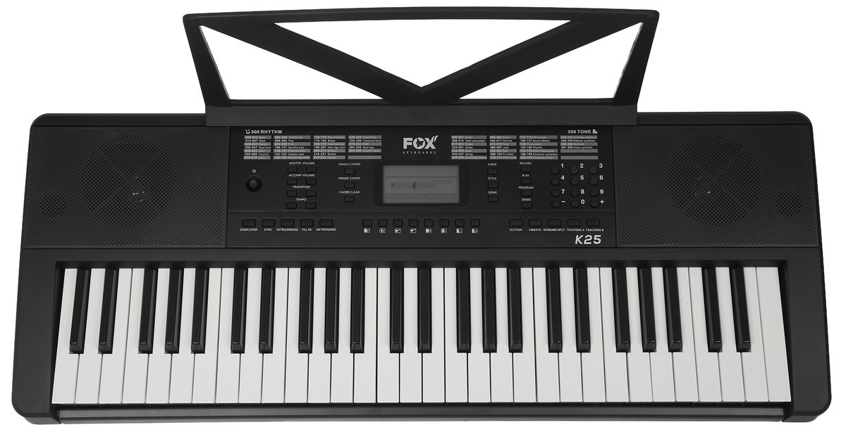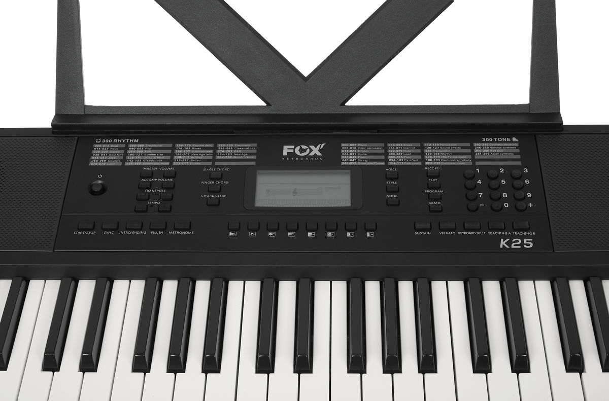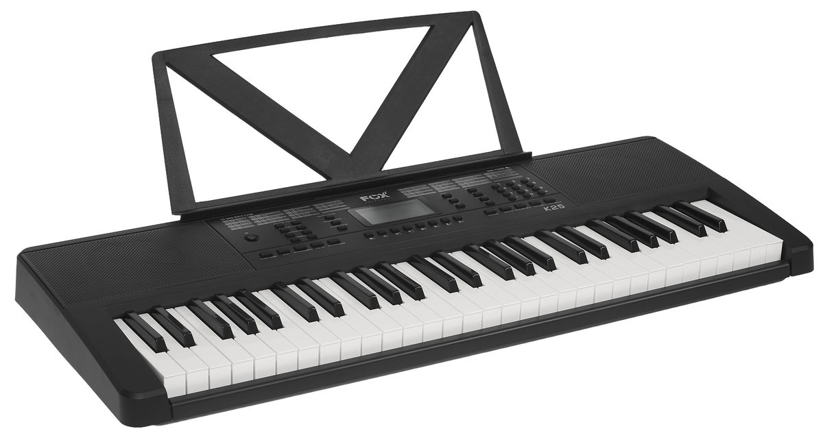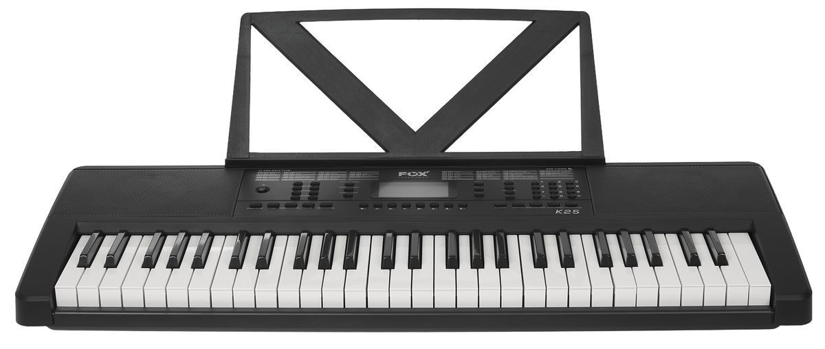 Zboží bylo vybaleno z obalu, jinak je zcela nové, nepoužité. Klávesy značky FOX jsou oblíbené především pro bezkonkurenční poměr cena/výkon a jsou vhodné především pro začínající a dětské muzikanty. Těm nabídnou veškeré základní funkce, díky nimž si mohou osvojit základní hudební principy a seznámit se s různými barvami zvuku. A pokud se nakonec hudební vášeň nerozvine, nemusíte smutnit nad tím, že jste do prvního nástroje investovali nesmyslně vysokou částku. FOX K25 nabízí 54 kláves standardní velikosti s dynamikou, 300 klasických i elektronických zvuků, osm drum padů, 300 automatických doprovodů, nebo 50 demo songů. Nechybí ani pokročilé funkce jako Split (rozdělení klaviatury pro hru na dva nástroje zároveň), nebo nastavení Sustainu (dozvuku) a Vibrata. Klaviaturu lze rovněž transponovat, což ocení jak začátečníci, tak pokročilí hráči. Samozřejmostí je možnost hraní akordů jedním prstem, funkce Record pro záznam vašich pokusů nebo metronom a výukový systém. Ke klávesám je možné připojit mikrofon nebo externí zařízení s vašimi oblíbenými nahrávkami a zajamovat si tak s nimi.