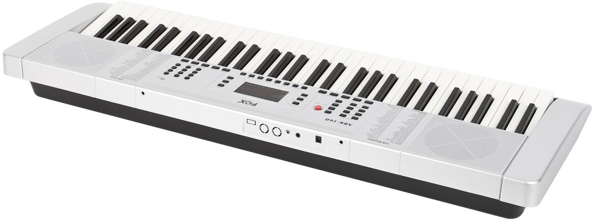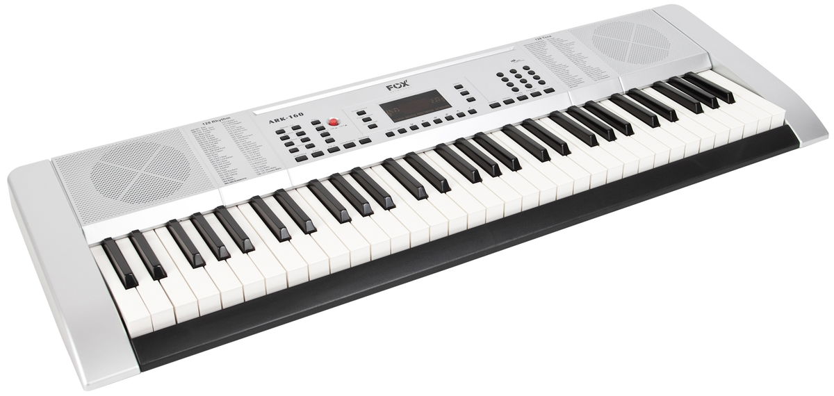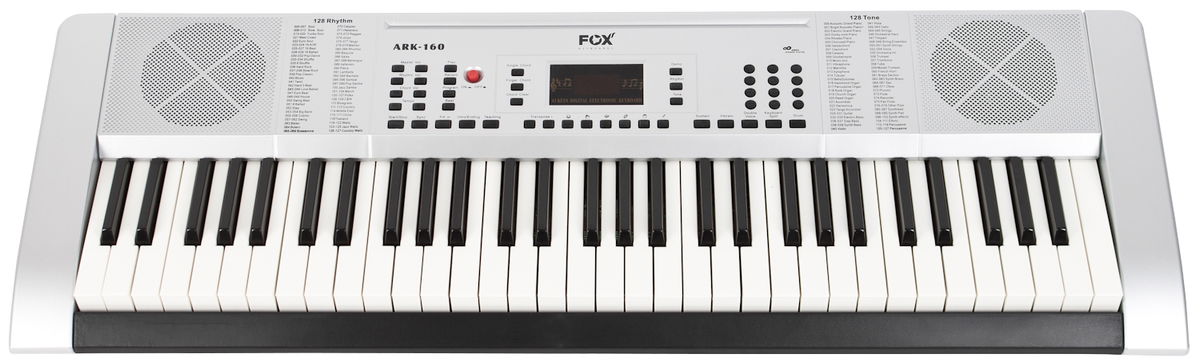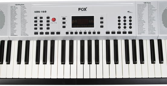 Klávesy značky FOX jsou oblíbené především pro bezkonkurenční poměr cena/výkon a jsou vhodné především pro začínající a dětské muzikanty. Těm nabídnou veškeré základní funkce, díky nimž si mohou osvojit základní hudební principy a seznámit se s různými barvami zvuku. A pokud se nakonec hudební vášeň nerozvine, nemusíte smutnit nad tím, že jste do prvního nástroje investovali nesmyslně vysokou částku. FOX 160 nabízí 61 kláves standardní velikosti, 128 zvuků a 128 automatických doprovodů. Nechybí ani pokročilé funkce jako Split (rozdělení klaviatury pro hru na dva nástroje zároveň), Dual Voice (vrstvení zvuků), nebo nastavení Sustainu (dozvuku) a Vibrata. Klaviaturu lze rovněž transponovat, což ocení jak začátečníci, tak pokročilí hráči. Nechybí možnost hraní akordů jedním prstem, funkce Record pro záznam vašich pokusů nebo metronom a výukový systém. Ke klávesám lze připojit mikrofon.