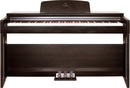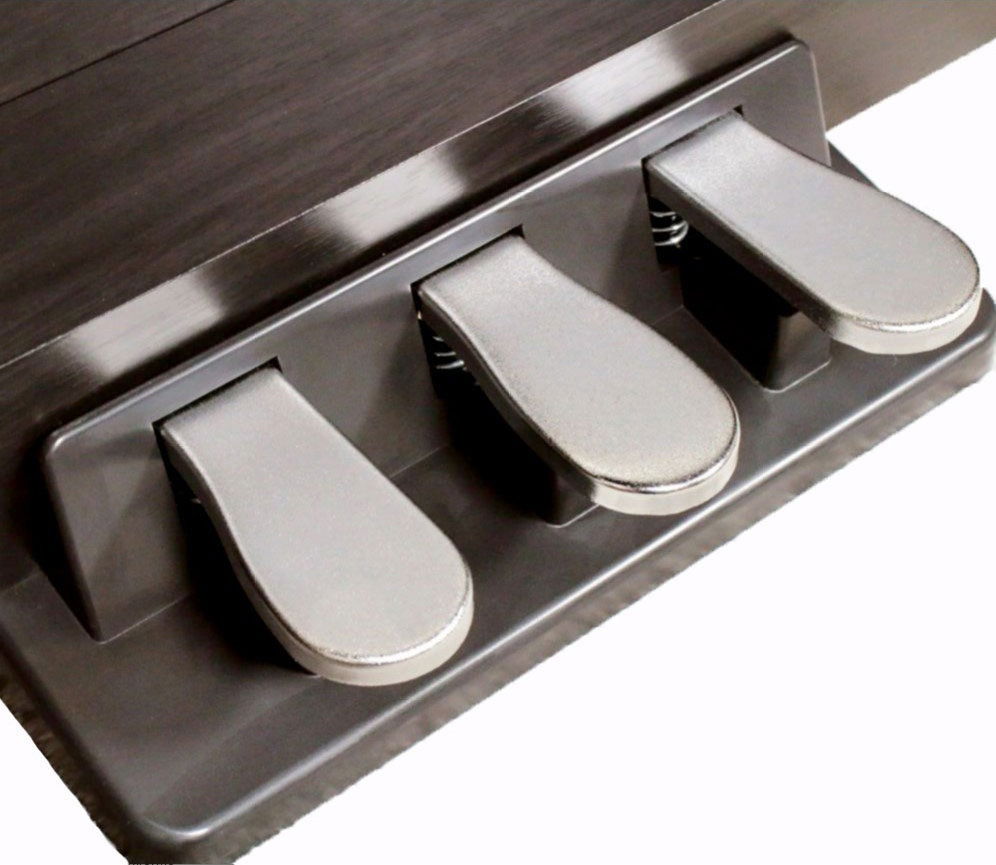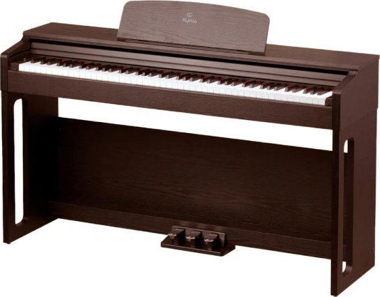Digitální piano Soundsation KYRIOS je cenově dostupný nástroj určený především pro domácí hraní, výuku a začínající klavíristy. Jeho provedení a design se věrně přibližuje akustickému klavíru, takže nabízí autentický pocit ze hry, ale zároveň je obohacen o četné digitální funkce, včetně různých zvuků, efektů a vestavěného metronomu. Klavír nabízí kompletní klaviaturu čítající 88 kláves s kladívkovou mechanikou Hammer Action, které věrně napodobují odpor a odezvu akustického klavíru. Díky elegantnímu dřevěnému kabinetu klavír zapadne do jakéhokoliv interiéru a stane se chloubou vaší domácnosti. Nástroj je vybaven 20 kvalitními zvuky, včetně akustických a elektrických pian, varhan či smyčců. K dispozici jsou praktické funkce jako Layer pro vrstvení zvuků, Split, která vám umožní hrát každou rukou jiný zvuk a Twin Keyboard, ideální pro výuku se dvěma hráči. Samozřejmostí je vestavěný metronom pro cvičení tempa a rytmu a reverbové efekty, které dodají zvuku přirozenou ambienci. O ozvučení se stará výkonný stereo reproduktorový systém 2x 25 W, který poskytuje dostatečnou hlasitost i plný zvuk. Pro moderní použití nabízí piano USB-Audio/MIDI konektivitu, díky které jej snadno připojíte k počítači, tabletu nebo chytrému telefonu a můžete nahrávat přímo do DAW. Nechybí ani dva sluchátkové výstupy pro tiché cvičení, Aux In pro přehrávání externích zvukových zdrojů a Line Out. Součástí je také tradiční trojitý pedál (Soft, Sostenuto, Sustain), který je běžnou součástí akustických pian a zvyšuje tak autentický pocit ze hry. Značka Soundsation je známá zaměřením na výborný poměr ceny a výkonu a model KYRIOS tuto filozofii plně potvrzuje. Jedná se o digitální piano ideální pro studenty, domácí hudebníky i každého, kdo hledá spolehlivý nástroj s autentickým pocitem ze hry a moderními funkcemi.