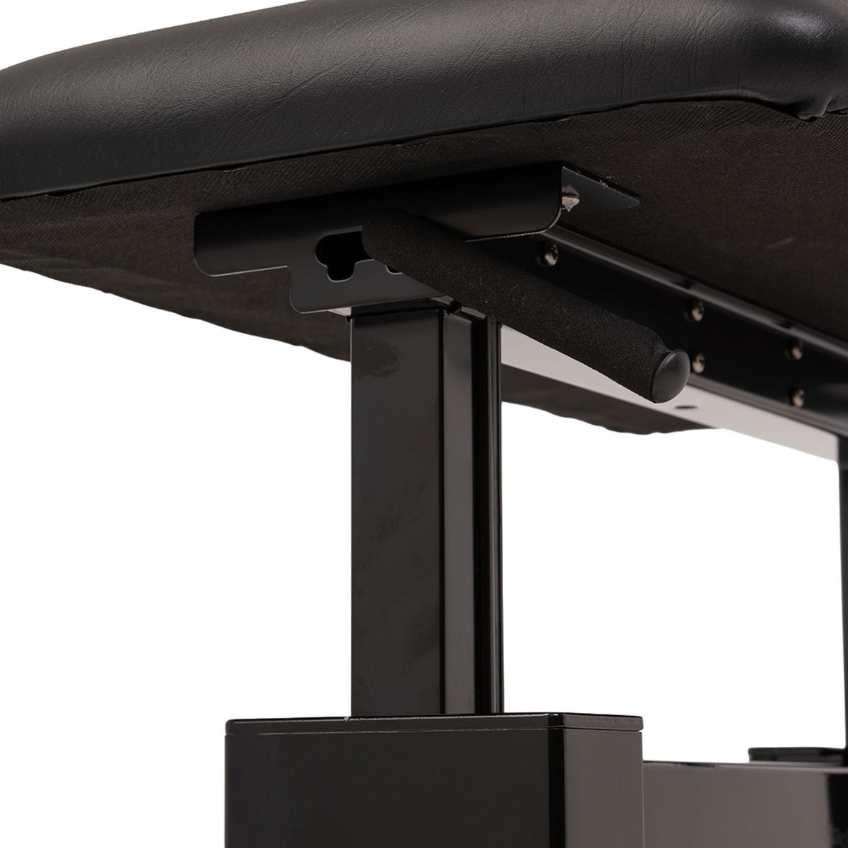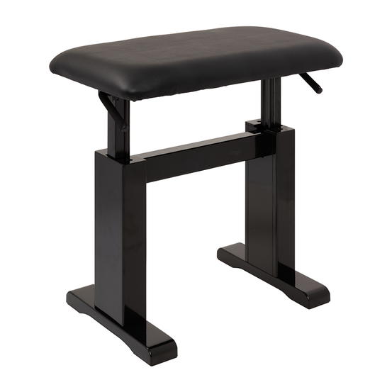 Kvalitní hydraulická klavírní stolička v moderním designu. Nastavitelná výška v rozmezí 46,5 až 59 cm, sedák 63 x 33 cm z černého vinylu. Hmotnost 13,1 kg. Barva černá lesklá. Použití pro koncertní produkce i domácí cvičení.