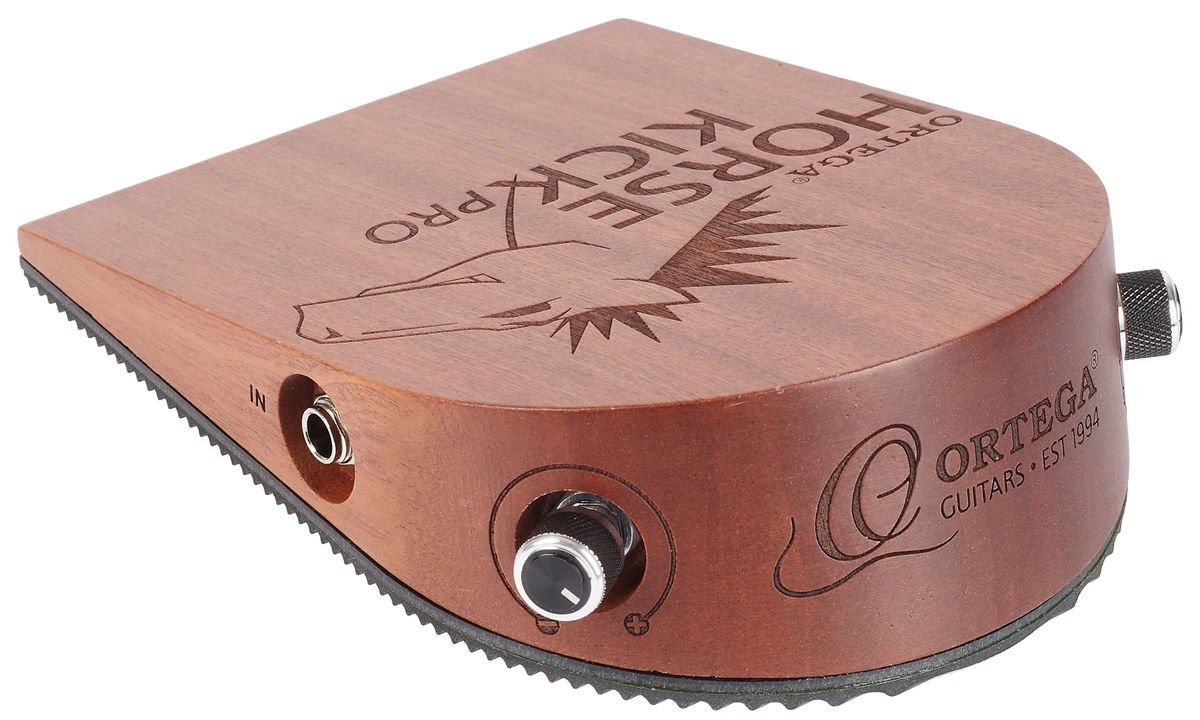 Zboží bylo vybaleno z obalu, jinak je zcela nové, nepoužité. Ortega Horsekick je digitální, perkusivní efekt, který je vhodný k rytmickému doprovodu například při hře na kytaru. Obsahuje pět samplů perkusivních zvuků – tamburínu, cabasu, cowbell, basový buben, basový zvuk cajonu. Zvuk se ozve vždy, když na pedál šlápnete, efekt je navíc tlakově citlivý, takže můžete pracovat i s dynamikou. Praktickou funkcí tohoto efektu je možnost zapojit do něj nástroj přímo a pomocí ovladače hlasitosti namíchat potřebnou hladinu perkusivního zvuku, který se ozývá z komba. Nástrojový signál při průchodu efektem není nijak ovlivňován. Součástí balení je napájecí adaptér. • Digitální, perkusivní efekt • Materiál: masivní sapele • Obsahuje 5 samplů: tamburína, cabasa, cowbell, basový buben, basový zvuk cajonu • Ergonomický design pro snadné ovládání • Ovládání: hlasitost, přepínač zvuků • Vstup a výstup: 6,3 mm jack