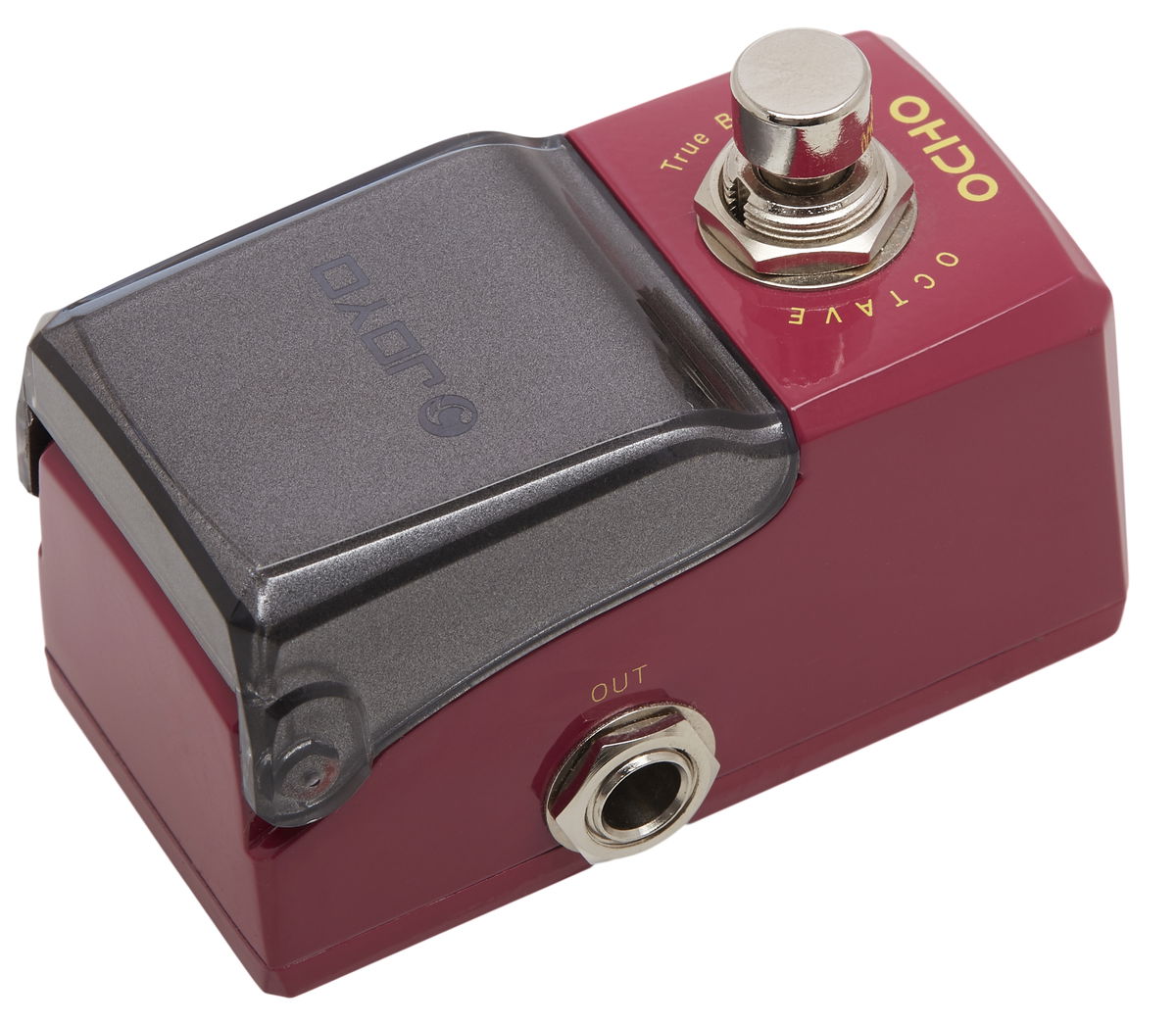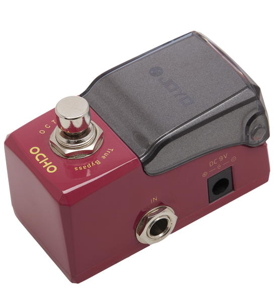 Pedálové efekty ze série Ironman jsou typické malými rozměry a jednoduchým ovládáním. Neocenitelné jsou hlavně na menších podiích a ve zkušebně. Pevnost zaručuje konstrukce z hliníku, kterou jen tak nerozdupnete. Díky vybavení protiskluzovou gumou a suchému zipu, který je součástí balení, drží pedál vždy na svém místě. Krytka ovladačů uchová vaše specifické nastavení jak během koncertování, tak během převozu. Stačí jen zapojit. Joyo JF-300 Ocho Octave je velmi jednoduchý efekt, který však dělá přesně to, co má – obohatí váš tón o oktávové harmonie, čímž mu výrazně přidá na barvě i obsahu. K ovládání slouží potenciometry Oct 1 (1 oktáva níže) a Oct 2 (2 oktávy níže), pomocí ovladače Level přidáváte míru suchého (nezprocesovaného) signálu. Díky této konfiguraci je efekt zvukově velmi variabilní.