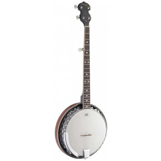 Pětistrunné bluegrassové banjo Deluxe. Tělo mahagon, buben kovový odlitek, 30 háčků (plochý typ), blána Remo 11" bílá pískovaná, lepený krk nato, menzura 660 mm (26"), hmatník palisandr, 22 pražců, perleťové značky poloh, krémově bílé lemování těla a krku, kobylka javor/eben, struník a loketní opěrka poniklovaná mosaz, otevřená mechanika s perleťovými knoflíky, ladění G-D-G-H-D. Barva přírodní lesklá.