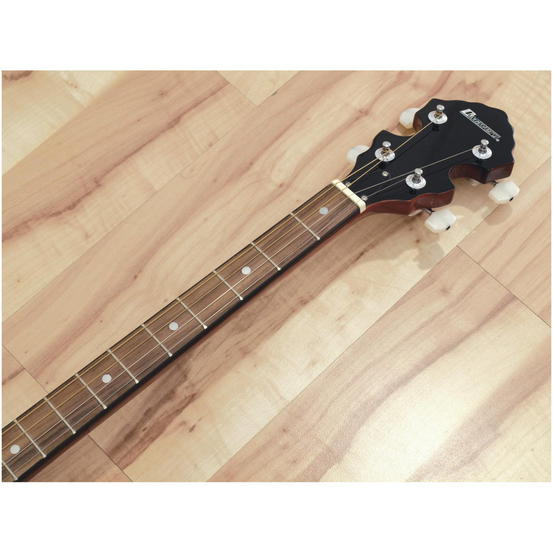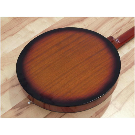 Čtyřstrunné banjo. Tělo nato, buben nato, 24 háčků (plochý typ), blána Remo 11" bílá pískovaná, lepený krk, menzura 574 mm (22,6"), hmatník blackwood, 19 pražců, perleťové značky poloh, kobylka javor/eben, struník poniklovaná mosaz, otevřená mechanika s perleťovými knoflíky, ladění C-G-H-D. Barva sunburst lesklá.