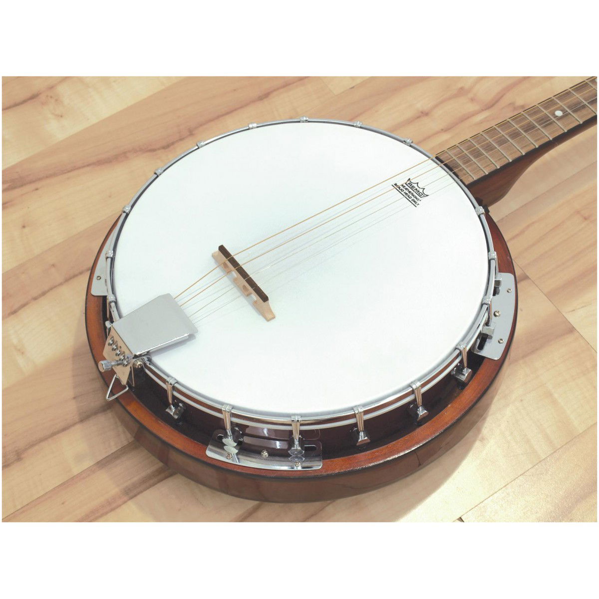 Čtyřstrunné banjo. Tělo nato, buben nato, 24 háčků (plochý typ), blána Remo 11" bílá pískovaná, lepený krk, menzura 574 mm (22,6"), hmatník…