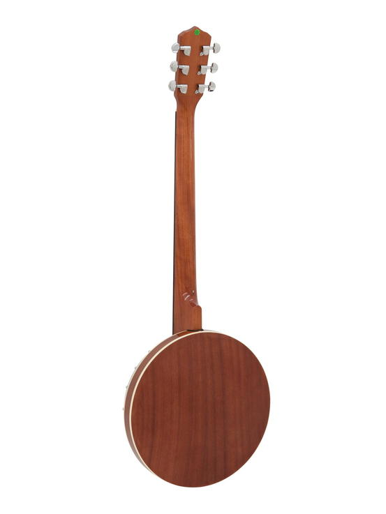 Šestistrunné banjo s kytarovou hlavou a laděním. Tělo mahagon, buben mahagon, 18 háčků (plochý typ), blána Remo Weatherking, krk mahagon, nultý pražec 44 mm, menzura 660 mm (26"), hmatník blackwood, 22 pražců, perleťové značky poloh, kobylka javor, chromovaný struník, niklovaná mechanika die-cast, ladění E-A-D-G-H-E. Barva přírodní lesklá.