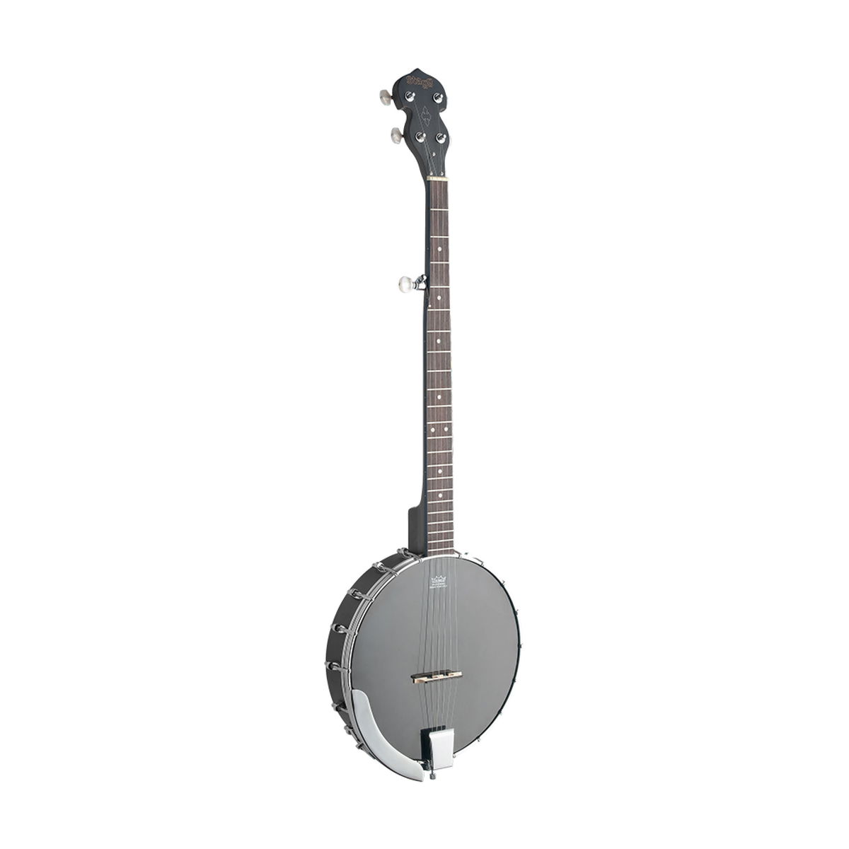 Pětistrunné banjo s otevřeným tělem. Tělo mahagon, koordinační tyč, 18 háčků, blána Remo 11" černá, lepený krk nato, menzura 660 mm (26"), hmatník palisandr, 22 pražců, perleťové značky poloh, kobylka javor/eben, struník a loketní opěrka poniklovaná mosaz, otevřená mechanika s perleťovými knoflíky, ladění G-D-G-H-D. Barva černá matná.