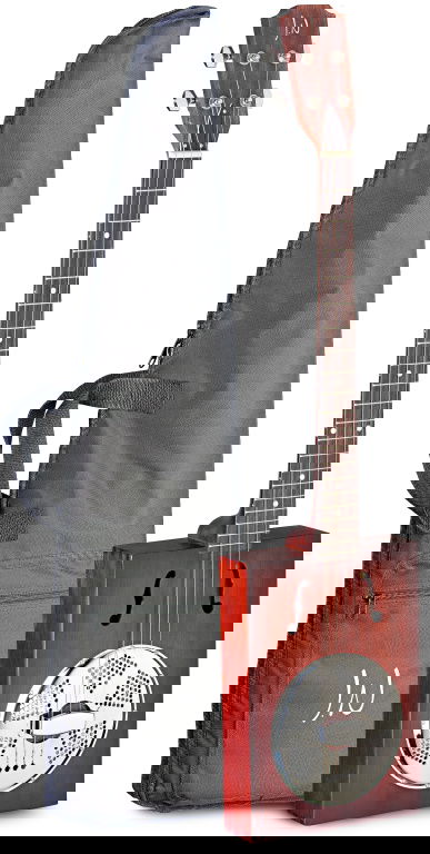 Rezofonická kytara typu Cigar Box. Vrchní deska smrk, spodní deska a luby smrk, krk mahagon s ocelovou výztuhou (truss rod), hmatník ovangkol s výložkou (ABS), kobylka ovangkol, menzura 600 mm, sedlo kobylky ABS, nultý pražec 34 mm (ABS), rezonátor single cone wooden biscuit, dva ozvučné otvory ve tvaru "f", niklovaná mechanika die-cast s chromovanými knoflíky, ladění D-G-H-E (jako čtyři nejvyšší struny šestistrunné kytary), alternativní ladění G-D-G-H. Barva cask burst matná, otevřené póry. Dodáváno včetně nylonového pouzdra.