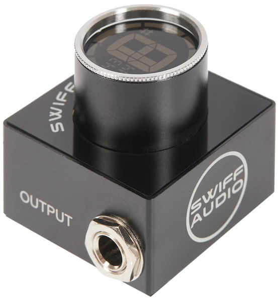 Zboží bylo vybaleno z obalu, jinak je zcela nové, nepoužité. Swiff C10 je pedálová ladička, která vám rozhodně nezabere místo v pedal boardu. Se svými rozměry 42 x 43 x 45 mm najde umístění skutečně kdekoliv a i přenášení bude radostí. Vyrobena je z hliníku, takže je odolná proti poškození a zároveň si zamilujete i její design. Bonusem je funkce mute tuning, která se postará o o ticho vašeho aparátu během ladění a velmi jasný barevný displej, který oceníte zejména na temném pódiu.
