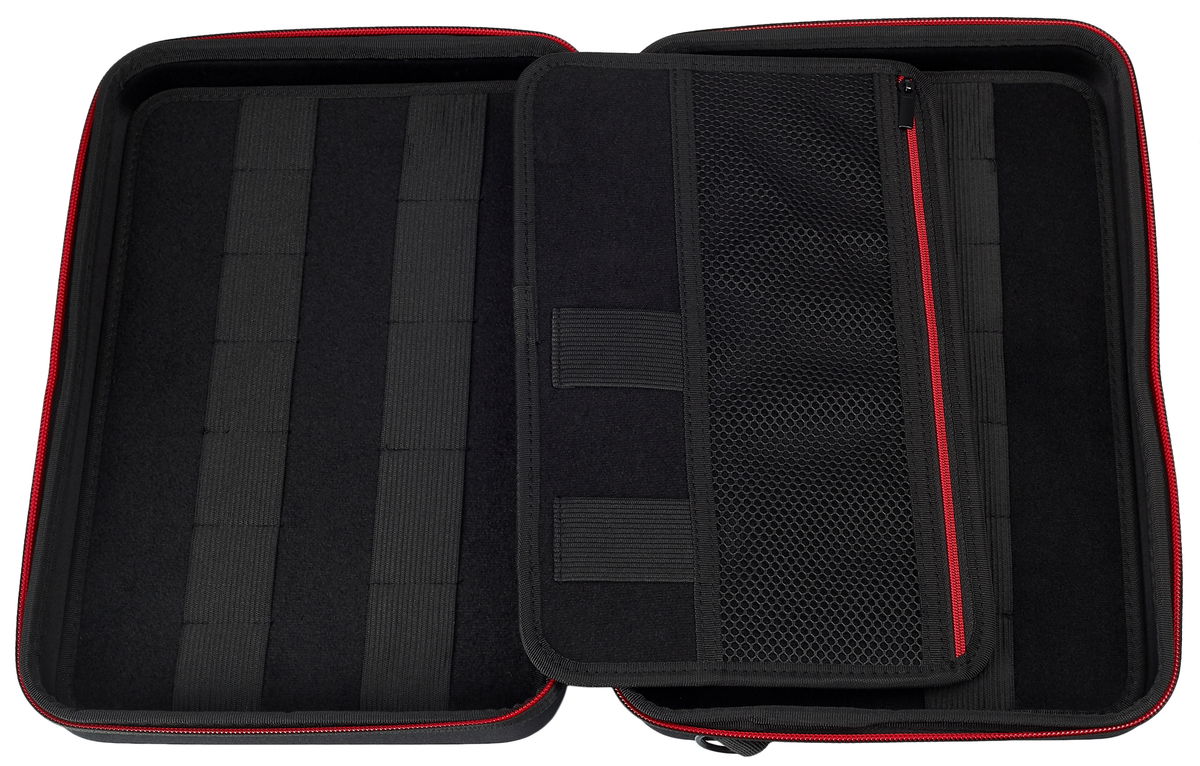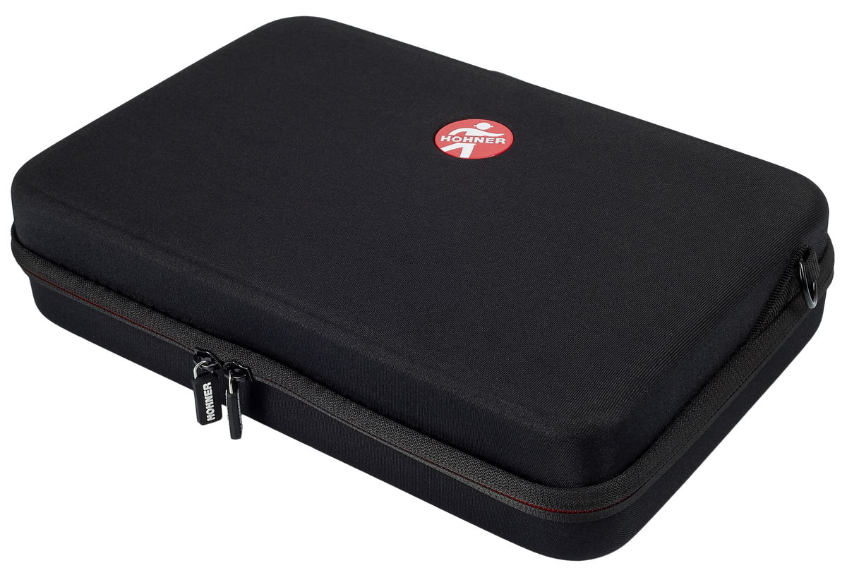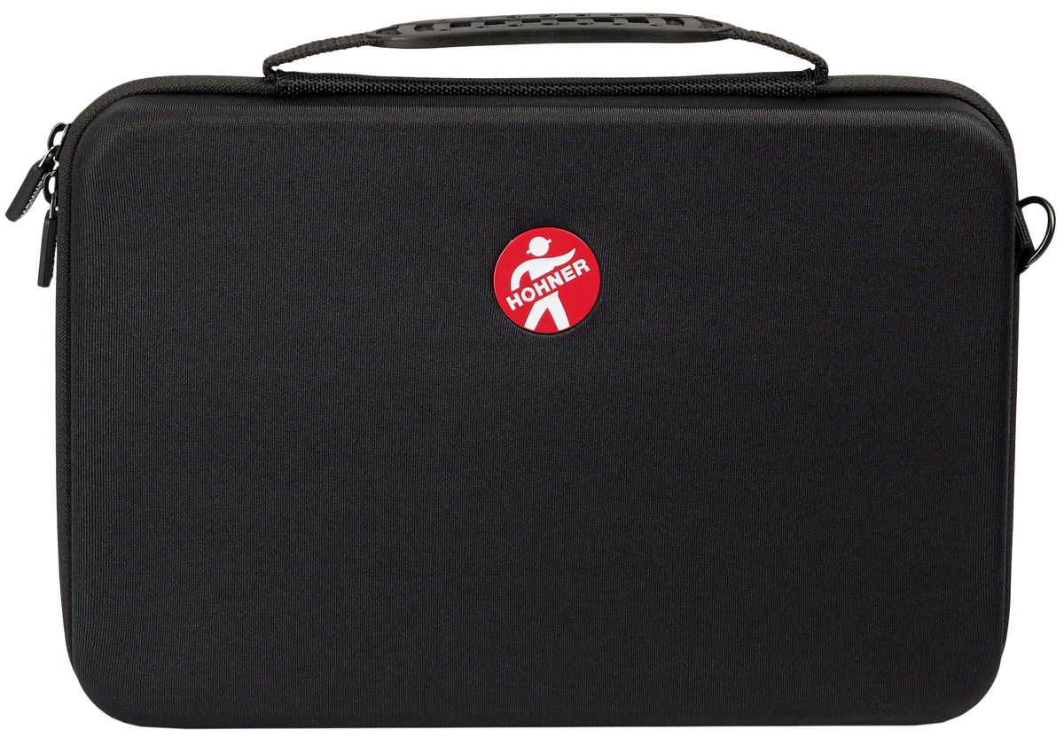 Pouzdra Hohner FlexCase představují díky praktickému designu a kvalitním použitým materiálům ideální řešení pro transport i skladování vašich oblíbených foukacích harmonik. Úložný prostor pouzdra FlexCase L nabízí maximální flexibilitu v rámci možných sestav uskladněných harmonik - bezpečně pojme buď 18 diatonických harmonik, pět dvanáctikanálkových chromatických harmonik, dvě šetnáctikanálkové chromatiky a různé kombinace výše zmíněných (plus například zpěvový mikrofon a množství drobného příslušenství a nářadí). Dva úložné prostory pouzdra odděluje odnímatelná vnitřní vložka připevněná zipem a též odnímatelné pouzdro na nářadí. Bezproblémovou a bezpečnou manipulaci s pouzdrem zaručuje zapínání na zip a madlo nebo odnímatelný popruh na rameno pro snadný transport.