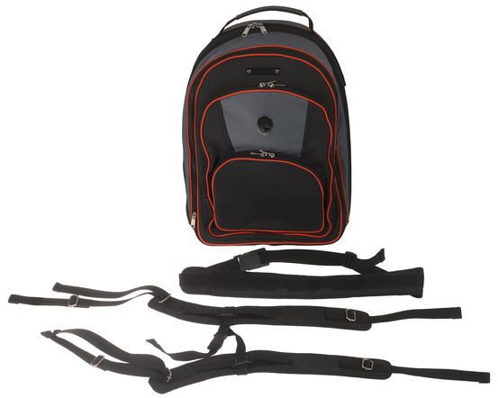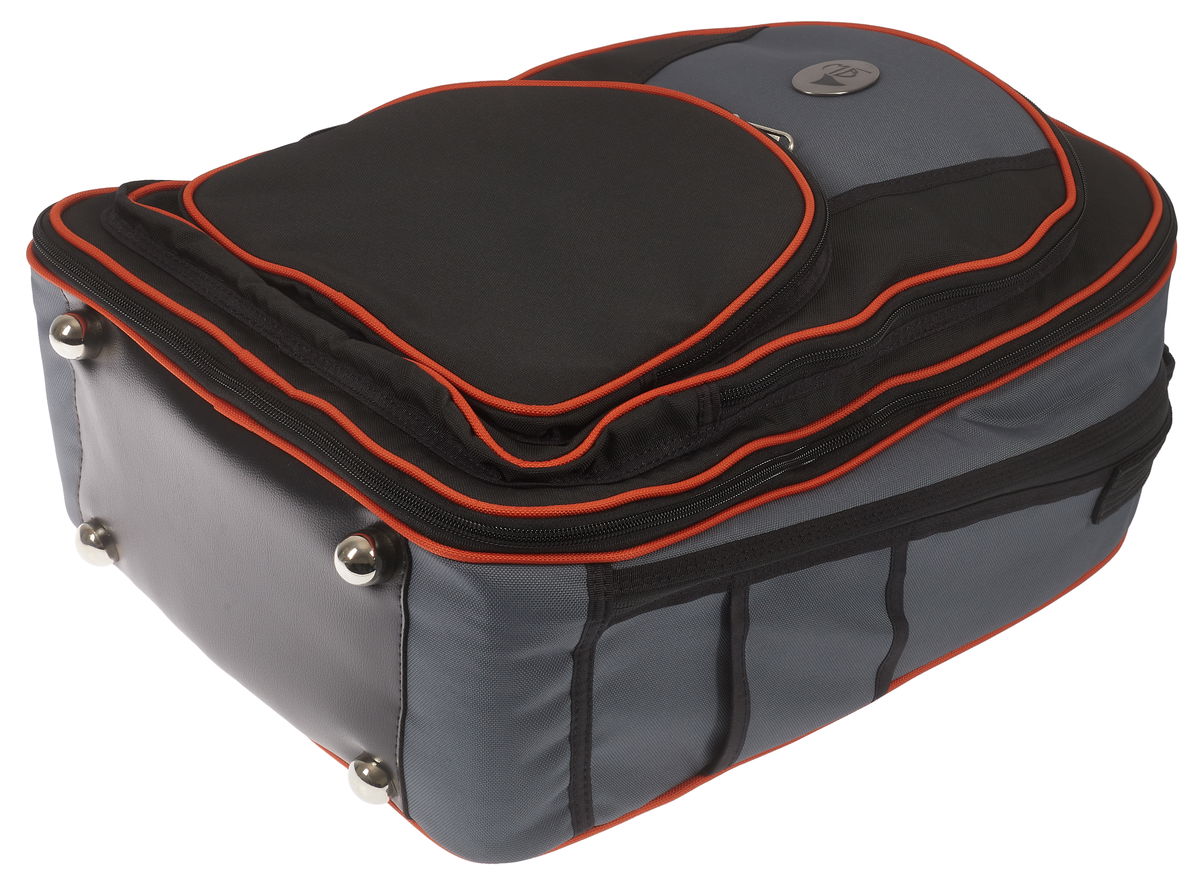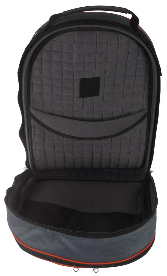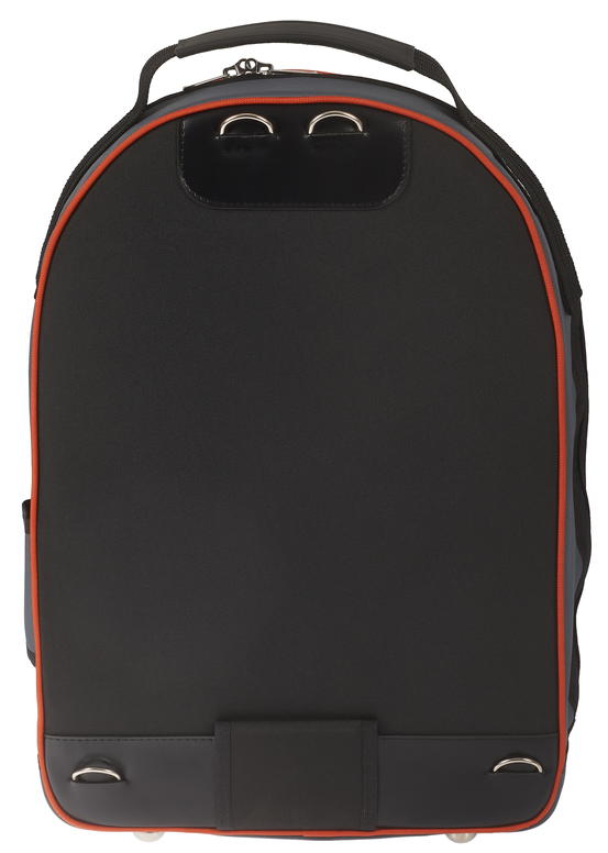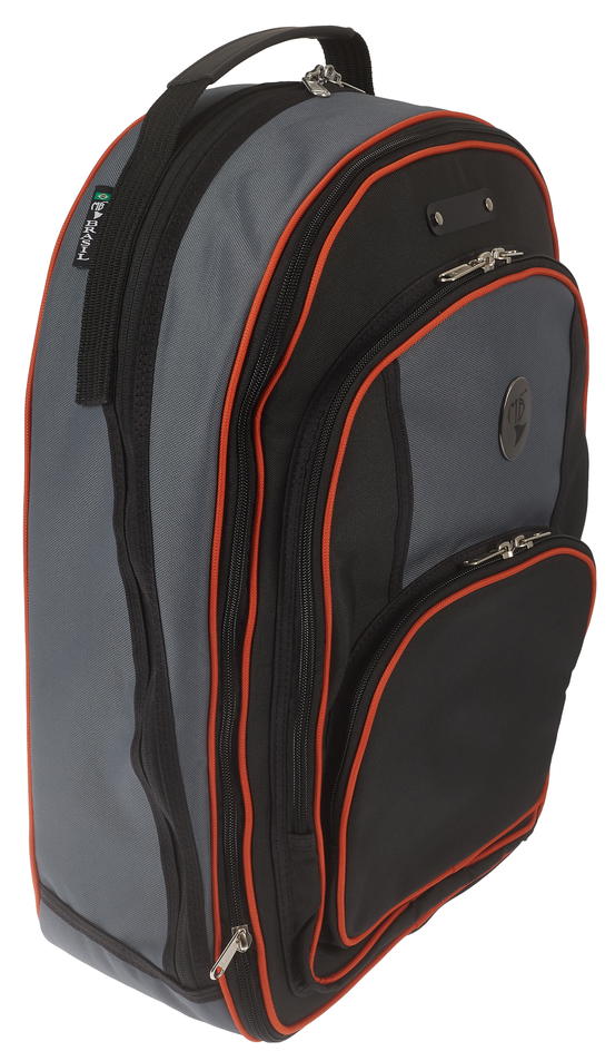 MARCUS BONNA MB Backpack Bag, Black/Grey Nylon, Orange Piping, Bell Protector