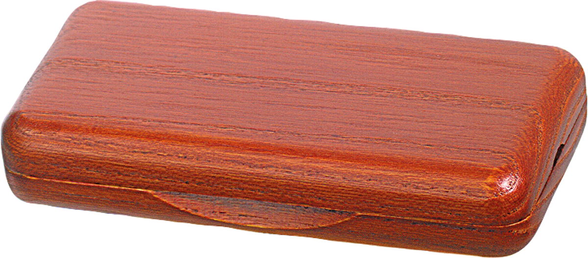 Dřevěné pouzdro se sametovým interiérem pro tři fagotové strojky.