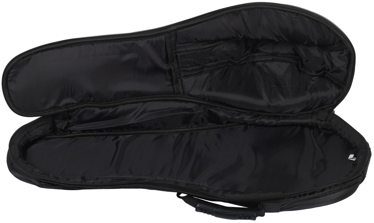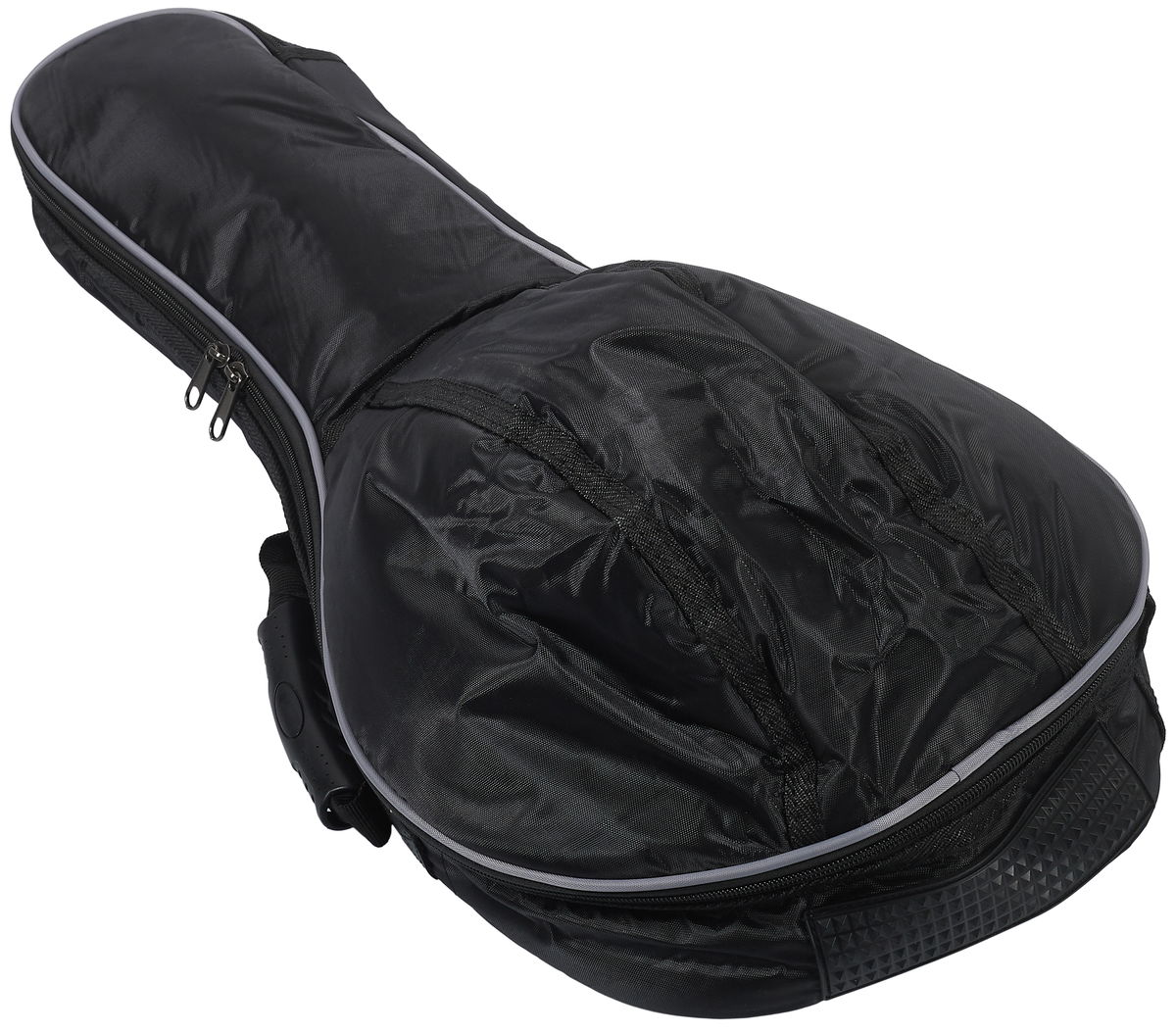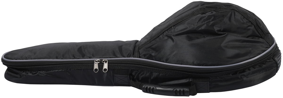 Tento obal pro mandolínu od společnosti Soundsation je vyroben z odolné polyesterové textilie, která váš nástroj udrží v bezpečí při nepříznivém počasí a ochrání jej proti mechanickému poškození. Z vnitřní strany je obal opatřen měkkým 10mm polstrováním, které zajišťuje ochranu při pádech a nárazech. na spodní straně se navíc nachází ochranná gumová podestýlka pro bezpečné odkládání nástroje na zem. K pohodlnému přenášení je pak určena gumová ergonomická rukojeť. Vsaďte na spolehlivou ochranu s obalem Soundsation!