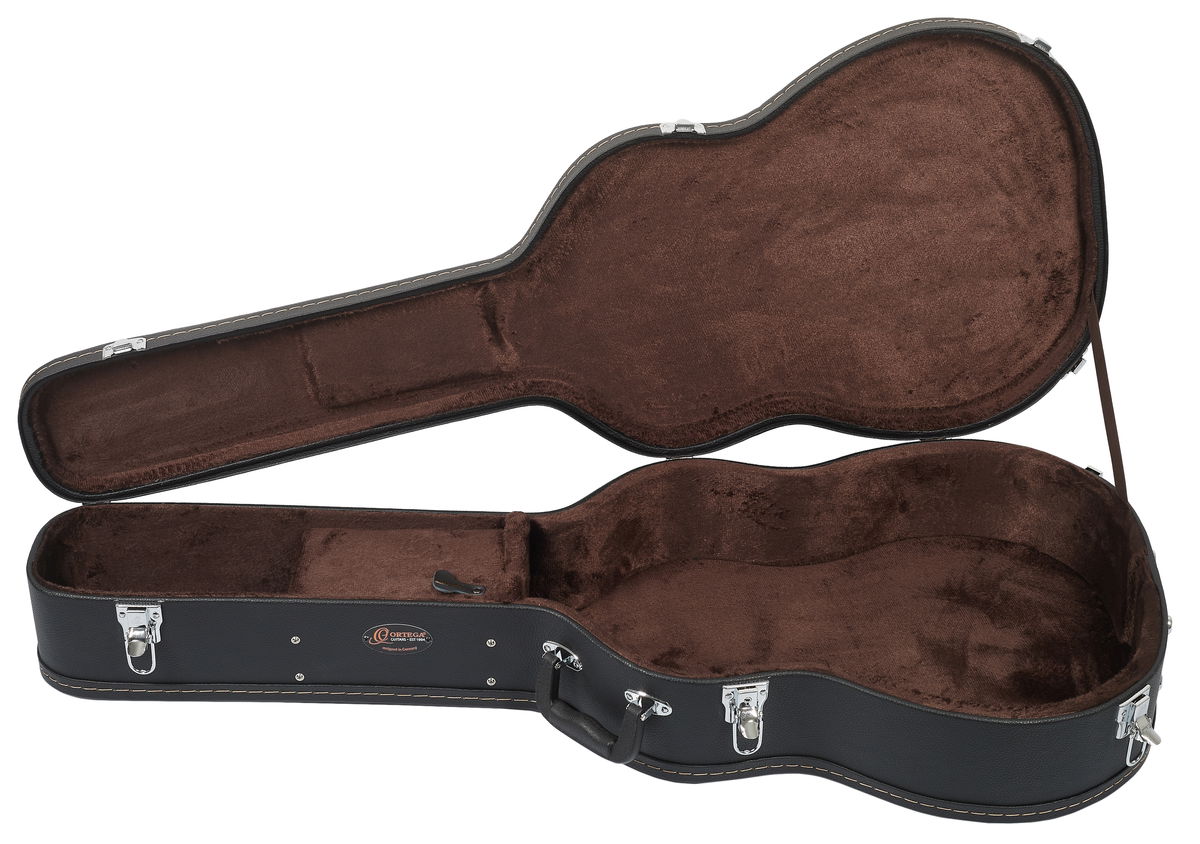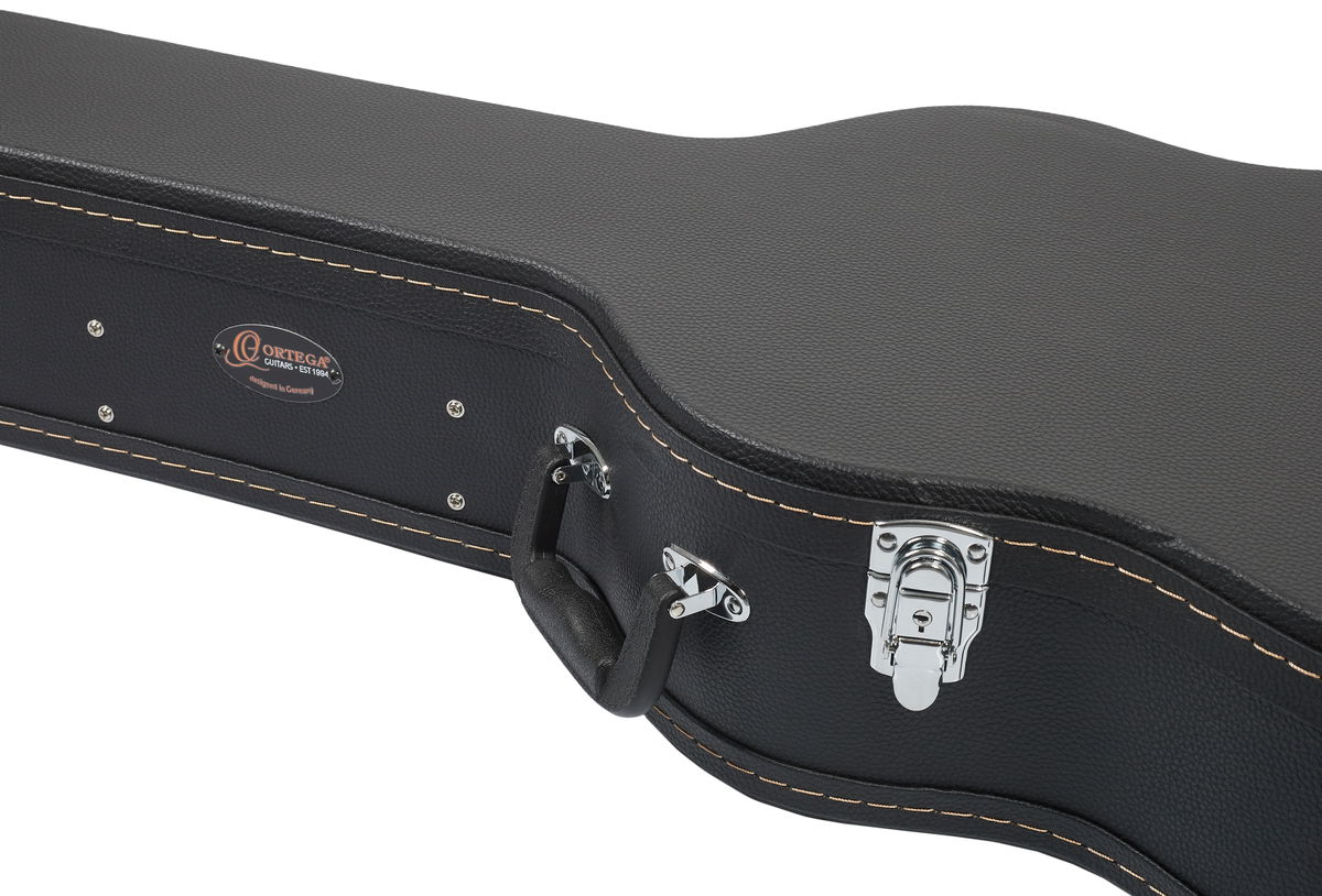 Nástrojové kufry značky Ortega řady Economy nabízí standardní pevnou překližkovou konstrukci s černým vinylovým potahem za příznivou cenu. Vnitřek je pro větší pohodlí nástrojů vyplněn patnáct milimetrů tlustým polstrováním. Samozřejmostí je přihrádka na drobné příslušenství. Maximální bezpečí zajišťují chromované zámky, k manipulaci s kufrem slouží bytelné madlo. Tento konkrétní kufr je vhodný pro akustické kytary s tvarem typu Dreadnought.