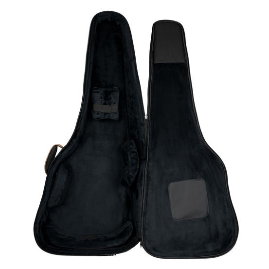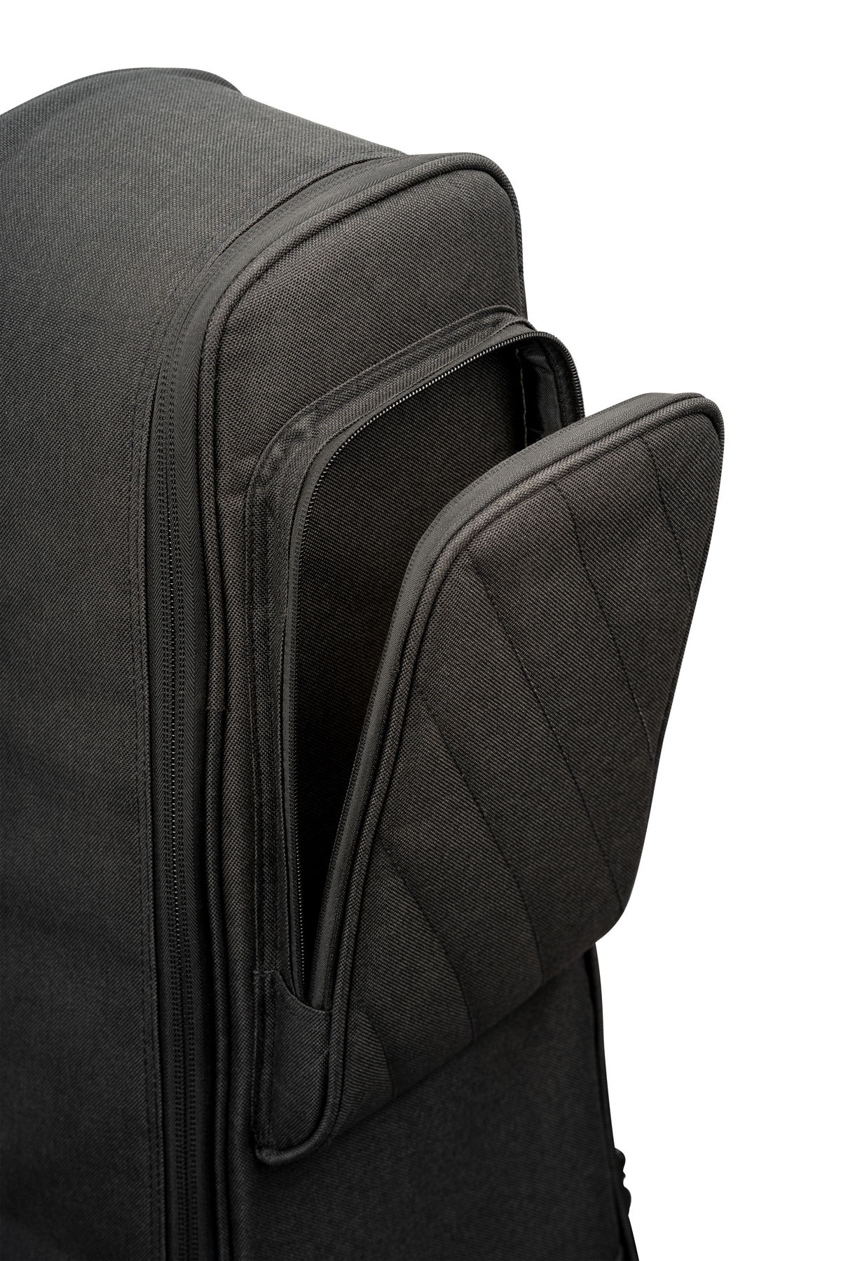 Nová řada obalů Deluxe od firmy Ortega poskytne vašemu nástroji nekompromisní ochranu při každé příležitosti a zároveň jistě zaujme svým elegantním designem. Vnější vrstva je vyrobena z kvalitní, voděodolné bavlněné tkaniny, uvnitř pak najdete příjemný semišový potah, který ochrání nástroj před poškrábáním. O maximální bezpečí nástroje se postará až 20 mm silné polstrování, které odolá i silným nárazům, výztuha pro krk nebo například zesílená gumová spodní strana. Na cestách pak jistě oceníte pohodlné polstrované ramenní popruhy, rukojeť se semišovým potahem nebo dvě prostorné kapsy pro příslušenství. Model pro akustické baskytary je dodáván včetně přídavných pěnových polštářků, díky kterým můžete obal přizpůsobit pro nástroje různých velikostí.