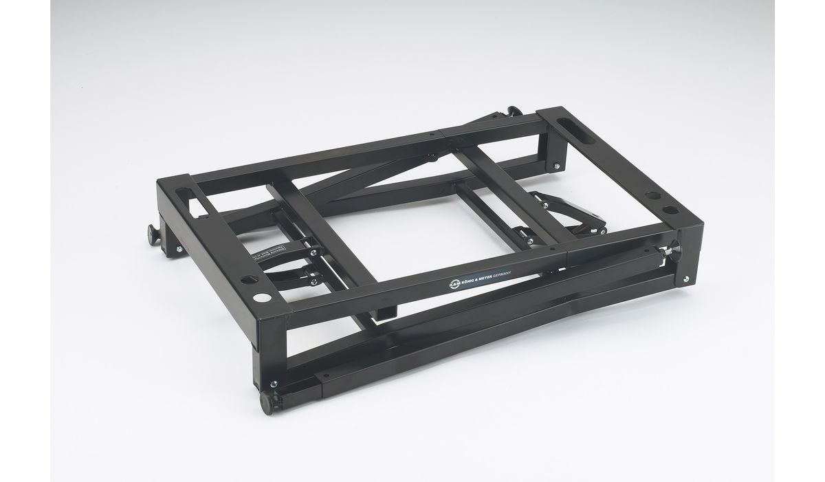 Profesionální klávesový stojan s možností nastavení výšky disponuje skvělou stabilitou a velmi kvalitním zpracováním.