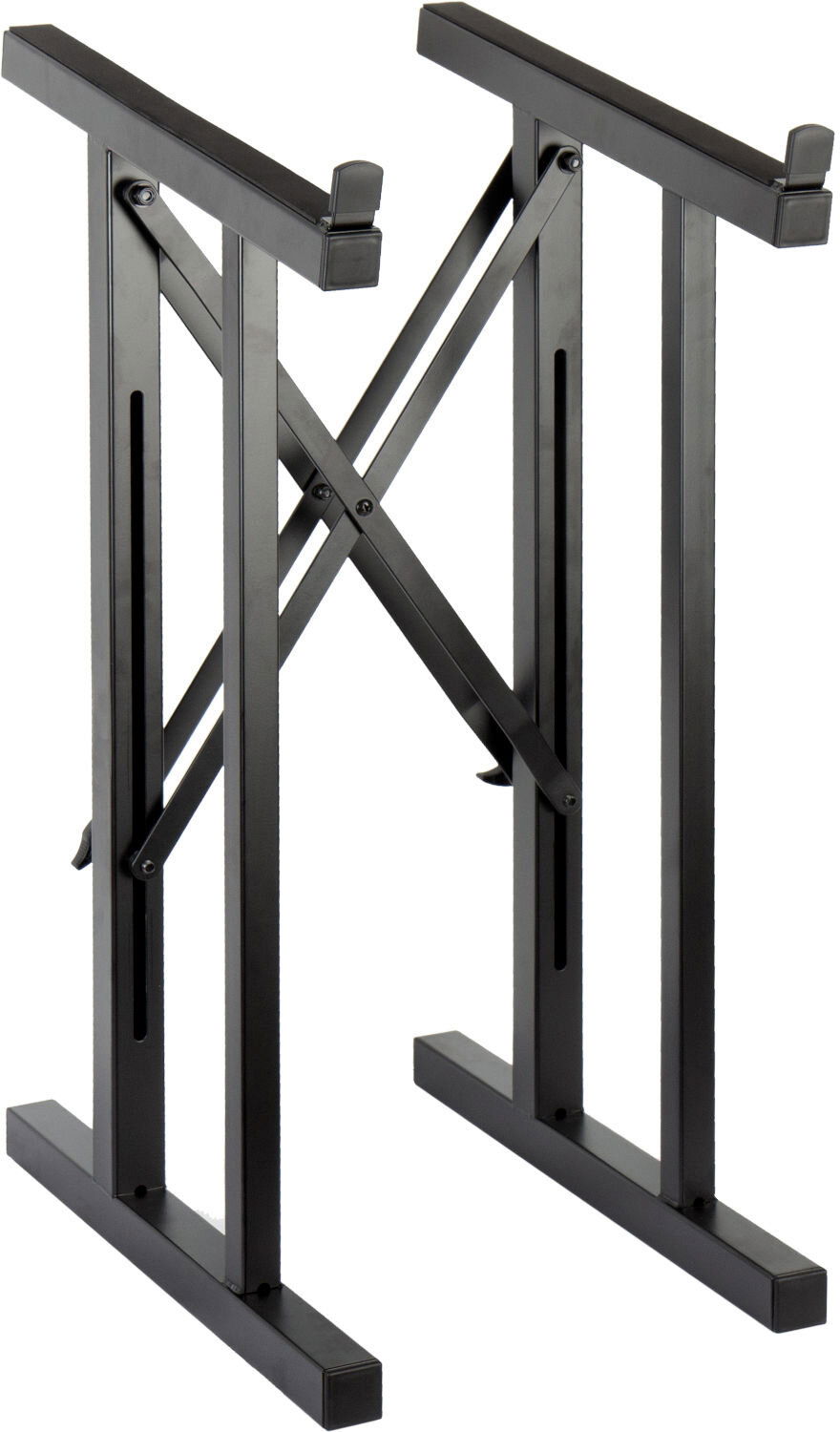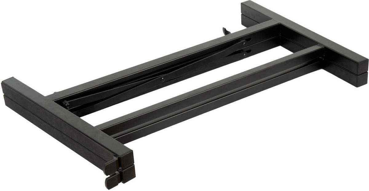 Mozos KSX5 je univerzální a skládací stojan pro klávesy, keyboardy a digitální piana, který vyniká svou robustností, stabilitou a snadnou nastavitelností. Byl navržen s ohledem na potřeby náročných uživatelů – ať už jde o profesionální hudebníky, studiové hráče nebo pokročilé amatéry. Díky ocelové konstrukci se zesílenými plastovými prvky bez problémů unese nástroje až do hmotnosti 80 kg. Stojan umožňuje nastavení šířky v rozmezí 35–54 cm, takže se snadno přizpůsobí různým typům a velikostem nástrojů. Ramena dlouhá 48 cm zaručují dostatečné a stabilní podepření i pro větší modely digitálních pian. Výška 80 cm je ideální pro hraní ve stoje i v sedě a kompaktní tvar nezabírá zbytečně mnoho místa. Díky skládací konstrukci je Mozos KSX5 snadno přenosný a vhodný i pro časté stěhování mezi zkušebnou, pódiem a domácím prostředím. Elegantní černé provedení podtrhuje profesionální vzhled, který zapadne do jakéhokoliv hudebního prostředí. V balení se nachází pouze stojan Mozos KSX5; ostatní předměty na fotografiích slouží pouze jako ukázka možného využití. Tento stativ představuje spolehlivou a praktickou oporu pro každý elektronický klávesový nástroj.
