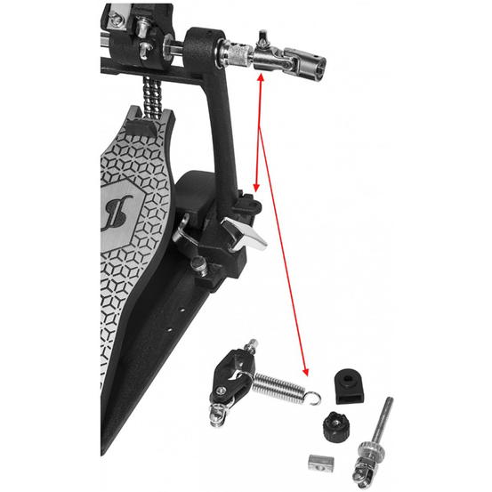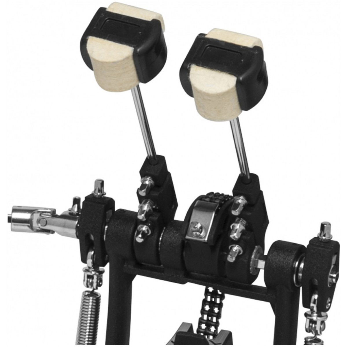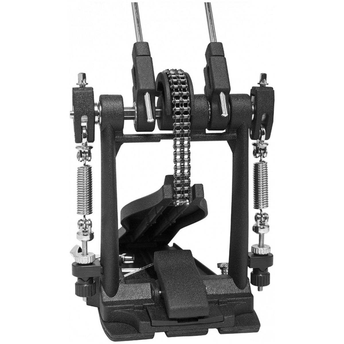 Double pedál k basovému bubnu. Dvojité řetězy, pevné ocelové základny s protiskluzovou gumou zespodu. Výsuvné trny aby držely pedály tam kde mají, přichycení k bubnu přes svorku, která se prakticky utahuje na boku pedálu. Čtyřhranné beatery (plsť, plast) s pamětovými objímkami, možnost nastavení úhlu beaterů (540°) a tuhosti pružin. Dodáváno s teleskopickým kardanem, ladicím klíčem a sadou příslušenství pro sestavení dvou samostatných pedálů!