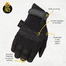 • Dvojitá vrstva syntetické kůže na dlani a v klíčových oblastech opotřebení.